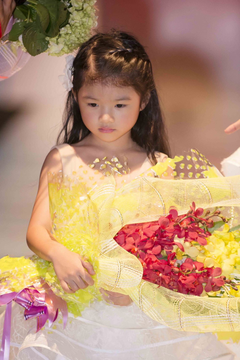 Chia sẻ sau cánh gà sân khấu, bé Bảo Tiên thỏ thẻ: “Con hơi hồi hộp, nhưng được diễn thời trang cũng rất thích. Ở nhà con cũng diễn hoài, bắt ba mẹ, ông bà ngoại và mọi người coi. Con còn biết đánh đàn và hát nữa. Con cũng đã chụp hình bằng điện thoại của mẹ rồi, con sẽ nhờ ba đi in hình rồi đem tới trường khoe với các bạn”.