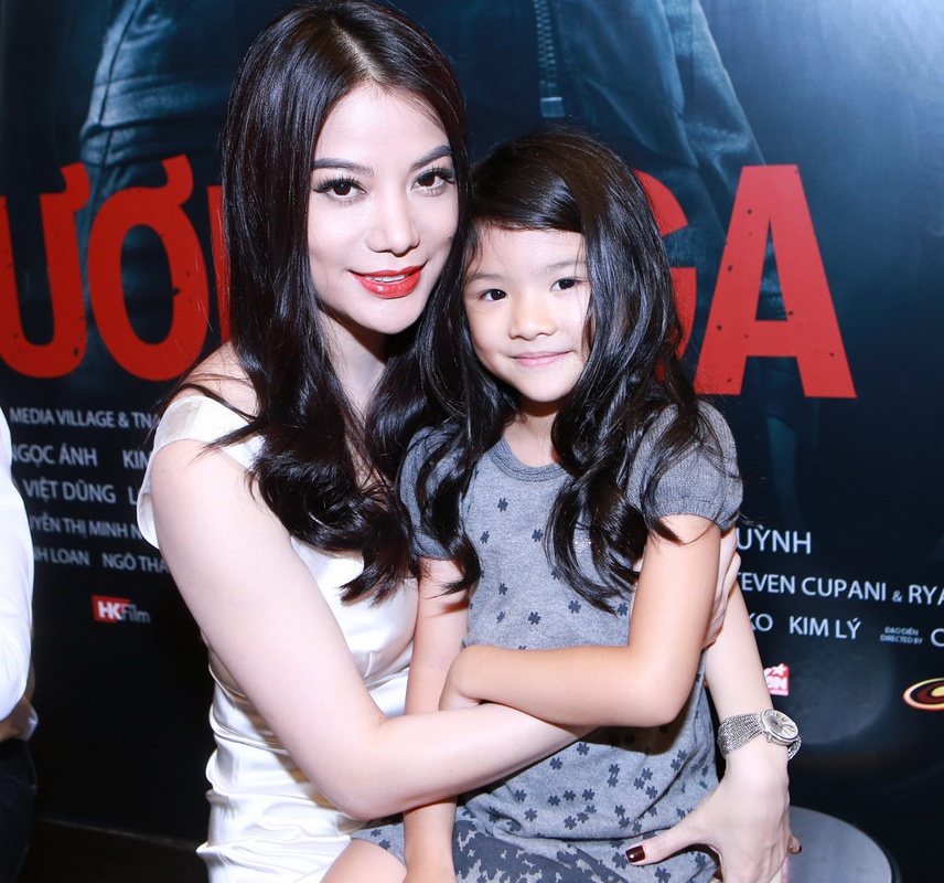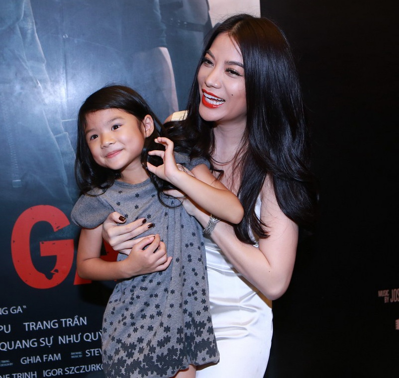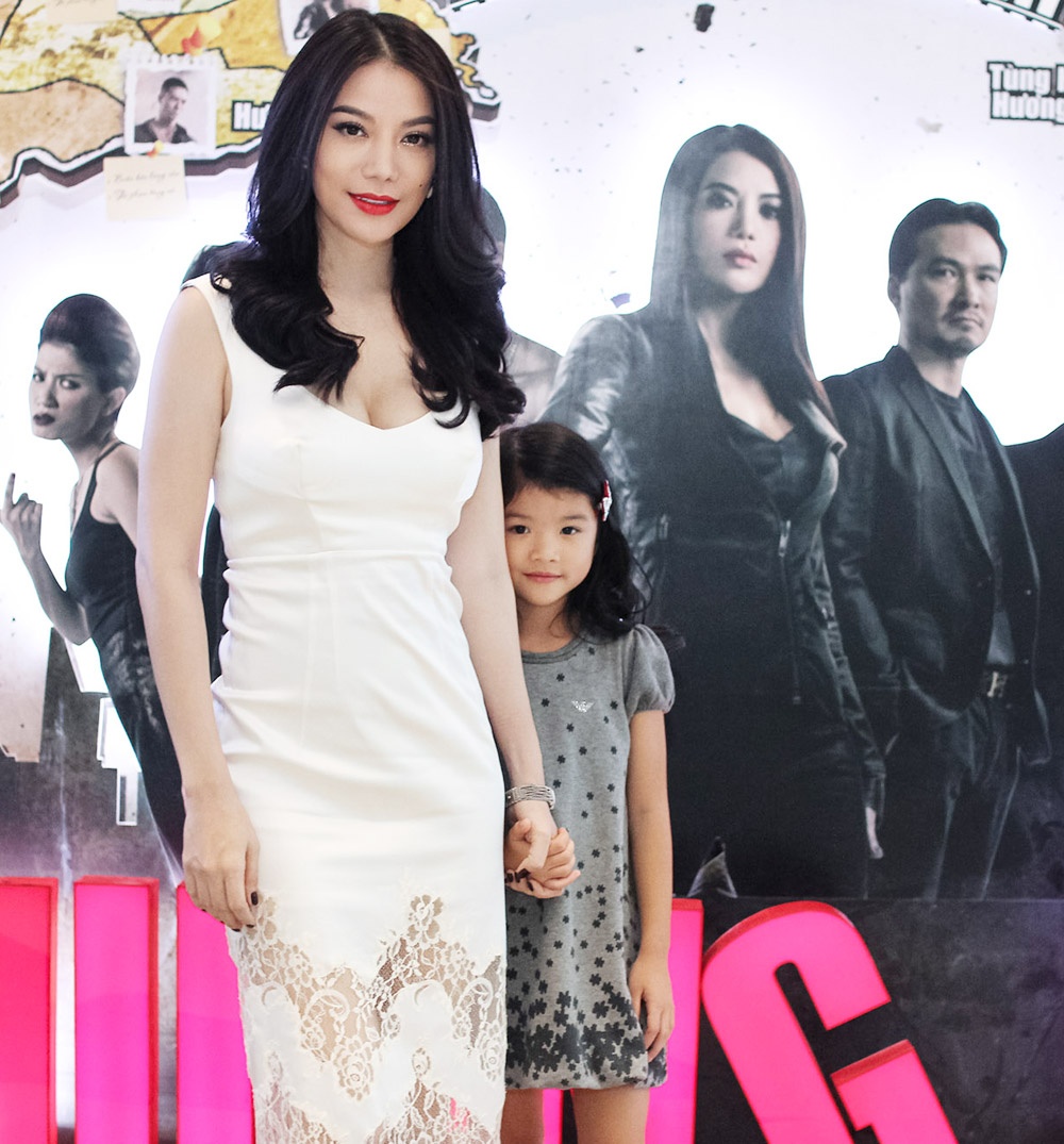 Nữ diễn viên diện đầm trắng trẻ trung không kém phần gợi cảm bên dàn chân dài. Cô cũng đưa con gái Bảo Tiên đến sự kiện. Mới 6 tuổi nhưng cô bé trông rất cao ráo.
