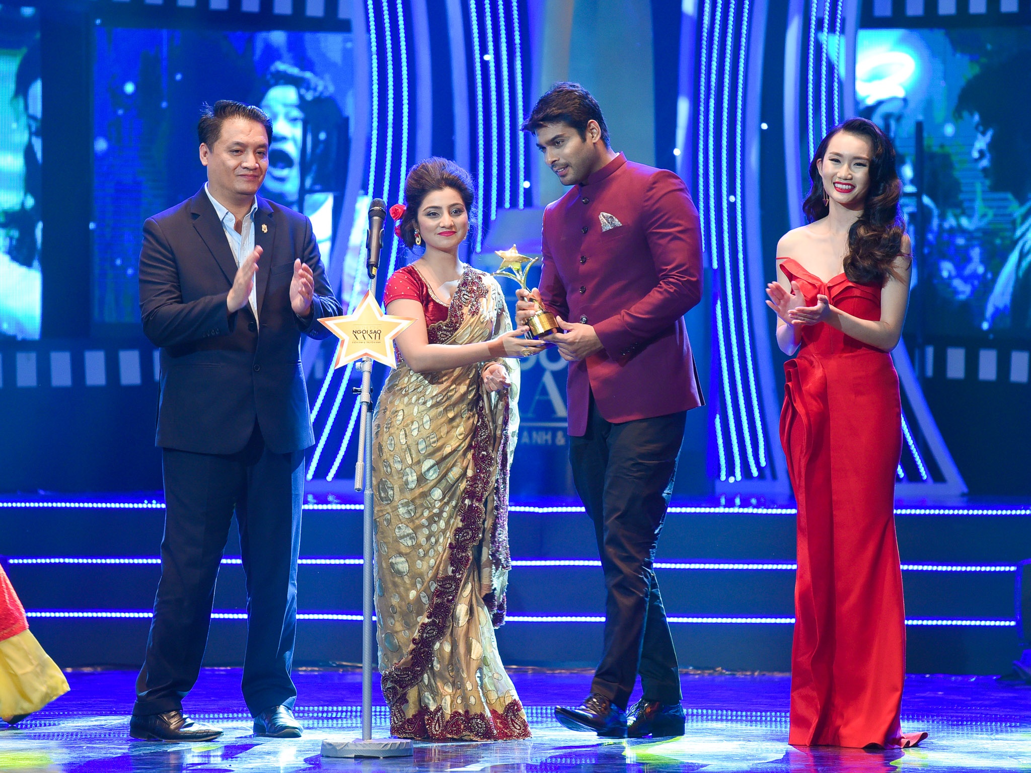 Bình Minh trong phim Thề không gục ngã đã vượt qua Lương Thế Thành và Mạnh Hương để giành giải Nam diễn viên được yêu thích nhất. Đạo diễn Minh Cao lên nhận giải thay anh. |