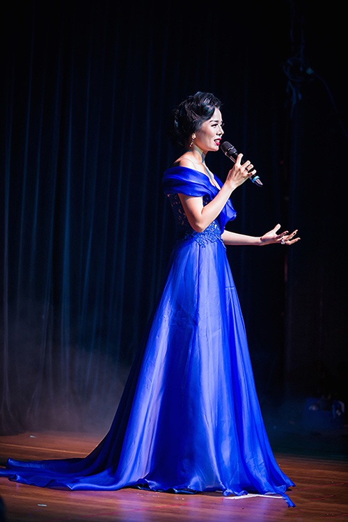 | Tại một đêm nhạc diễn ra vào trung tuần, Lệ Quyên cho thấy sức hút riêng khi diện những bộ váy sang trọng, hợp vóc dáng. Thiết kế dáng đầm cổ điển quý phái phù hợp với hình ảnh thanh lịch, sang trọng vốn có của bà mẹ một con. Tông màu xanh và kiểu dáng trễ vai còn đem đến cái nhìn cuốn hút, trẻ trung và gợi cảm. |