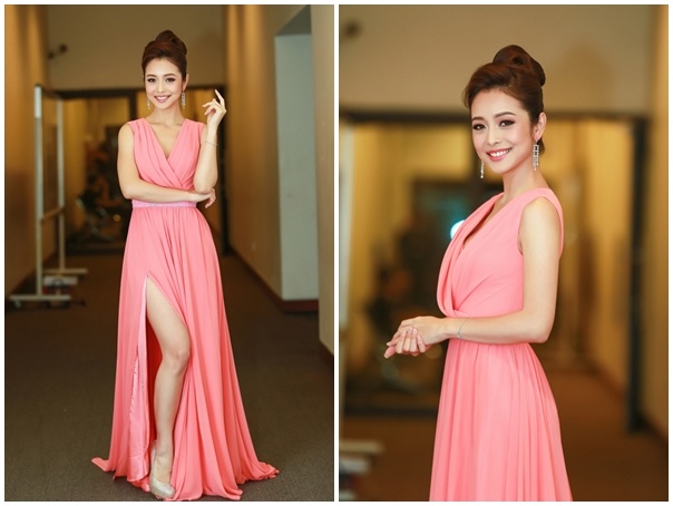 | Nhận được những đánh giá không mấy tích cực về hình ảnh thời trang có chiều hướng đi xuống, tuần này, Jennifer Phạm trở về với phong cách thanh lịch, nền nã khi diện bộ đầm tông màu cam pastel hợp xu hướng đang hot. Trang phục có kiểu cách đơn giản, màu trơn trẻ trung mang lại hình ảnh ưa nhìn cho bà mẹ hai con xinh đẹp nhất làng giải trí Việt. |