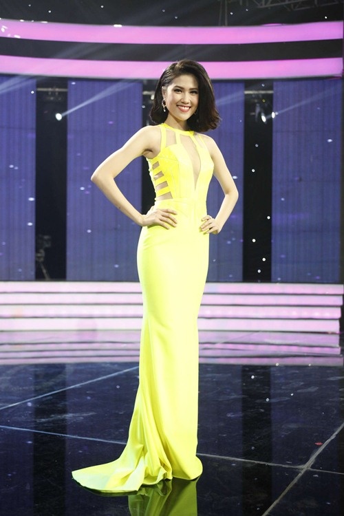 | Đảm nhận vai trò MC của cuộc thi Hoa khôi Áo dài tại TP.HCM, Thu Hằng xuất hiện nổi bật với trang phục tông vàng, bó sát quyến rũ. Bộ cánh sexy vừa đủ mang lại những đánh giá cao về hình ảnh đẹp và tinh tế của người đẹp sinh năm 1985. |