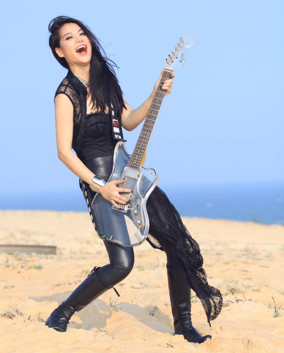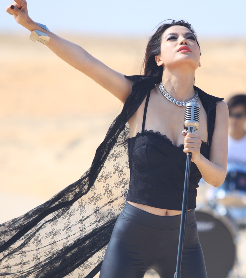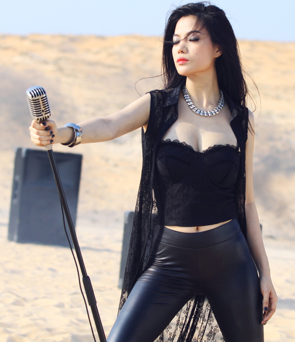| Trong MV Cơn mộng du, bà mẹ một con khoe vóc dáng nóng bỏng cùng vòng một gợi cảm trong trang phục bó sát. Cô vừa đàn vừa hát giữa sa mạc đầy nắng và gió. Nữ diễn viên chia sẻ, cô rất tự tin vào giọng hát của mình và không gặp nhiều khó khăn khi thu âm. |