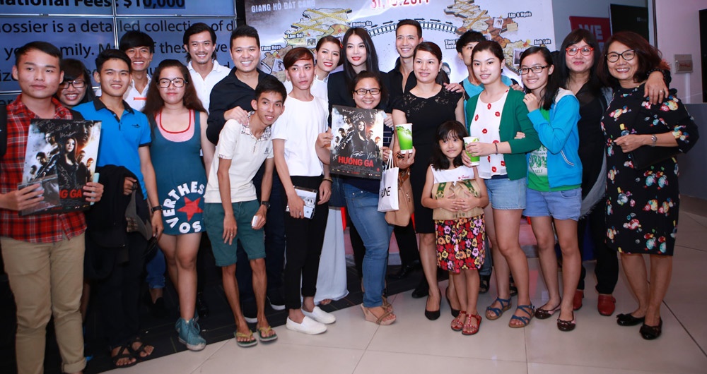 | Tối Halloween, cặp diễn viên chính của phim Hương Ga do Trương Ngọc Ánh và Kim Lý, đạo diễn Cường Ngô và dàn diễn viên phụ có buổi gặp gỡ, giao lưu cùng khán giả đến xem phim. Cặp trai tài gái sắc thu hút sự chú ý với trang phục đồng bộ. |