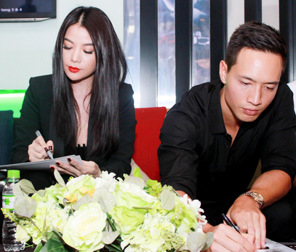 | Kim Lý vẫn đang từng ngày học tiếng Việt để có thể hiểu và trò chuyện cùng mọi người, tuy nhiên, anh chưa mạnh dạn nói vì sợ bị sai. Trong suốt buổi giao lưu, cựu người mẫu đã phiên dịch giúp anh. |