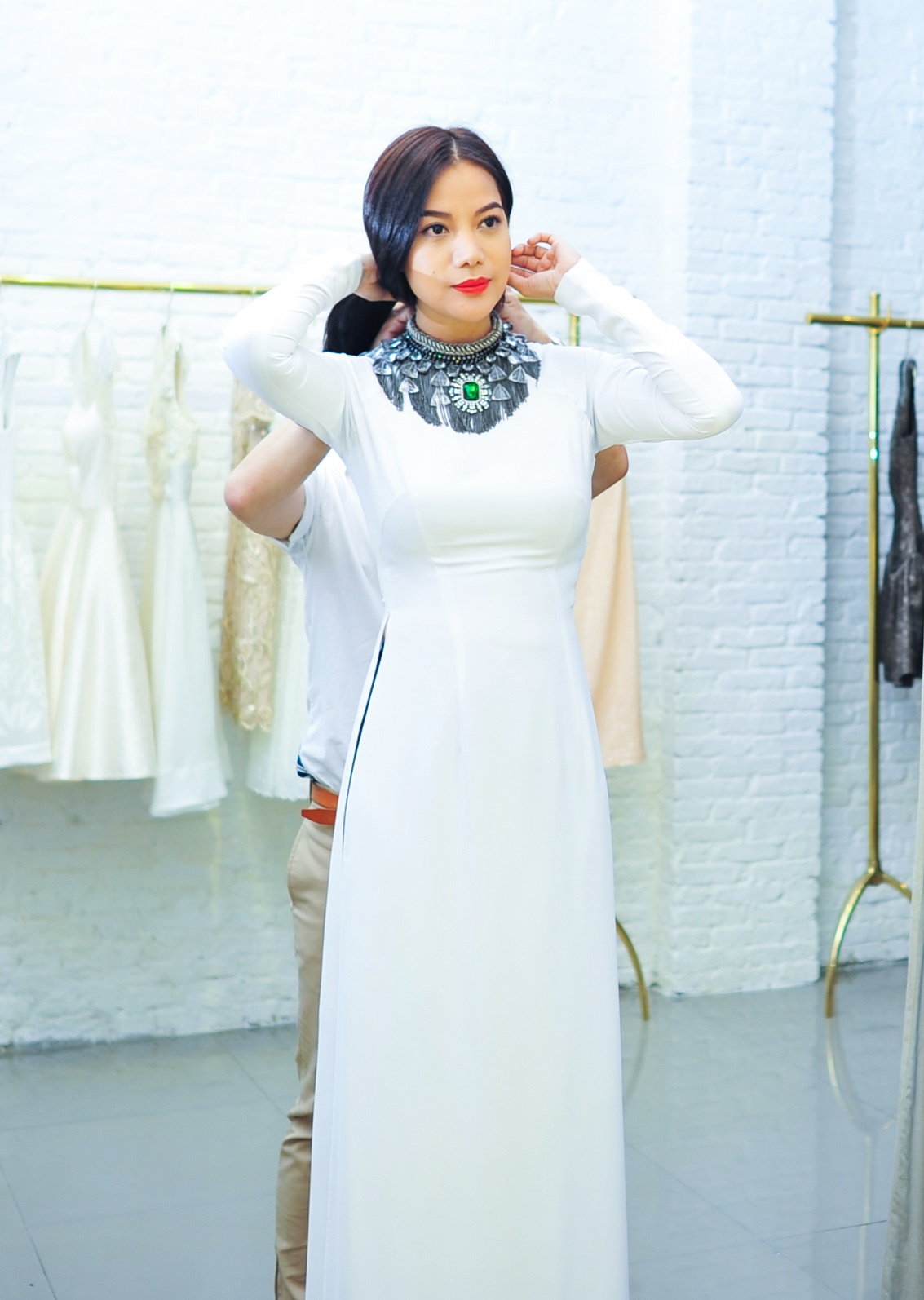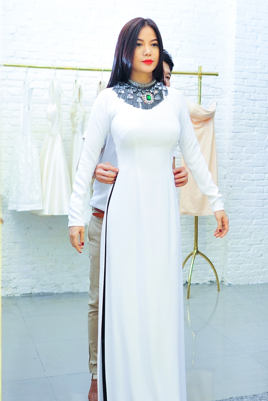 Trương Ngọc Ánh thử áo dài dự Liên hoan phim tại Pháp