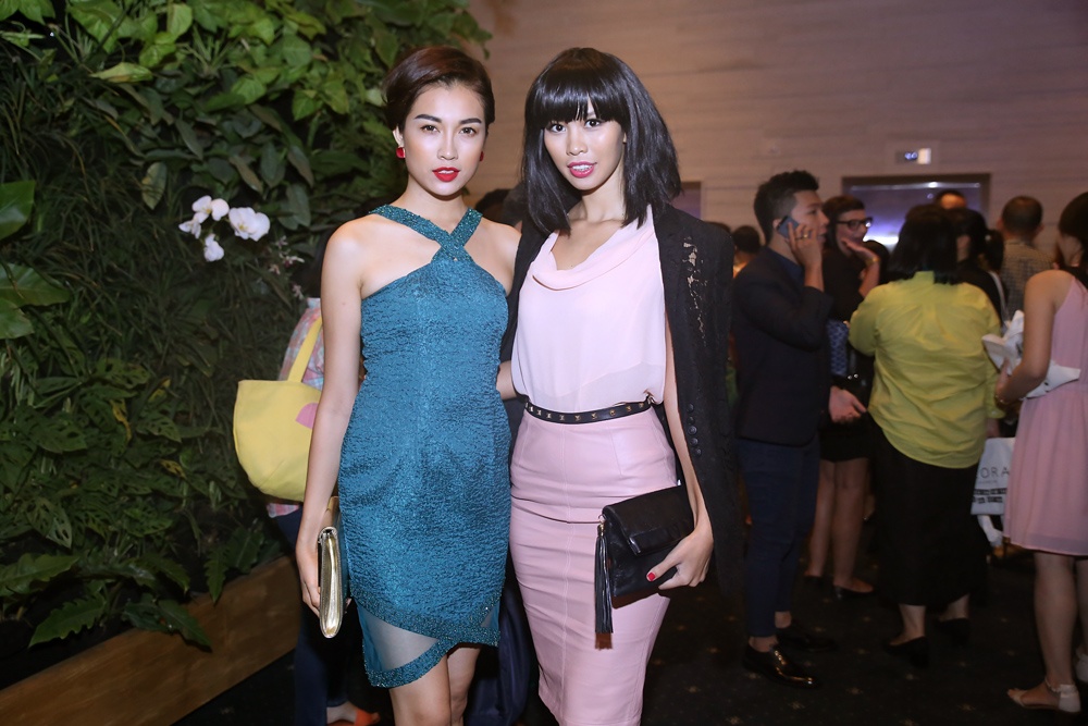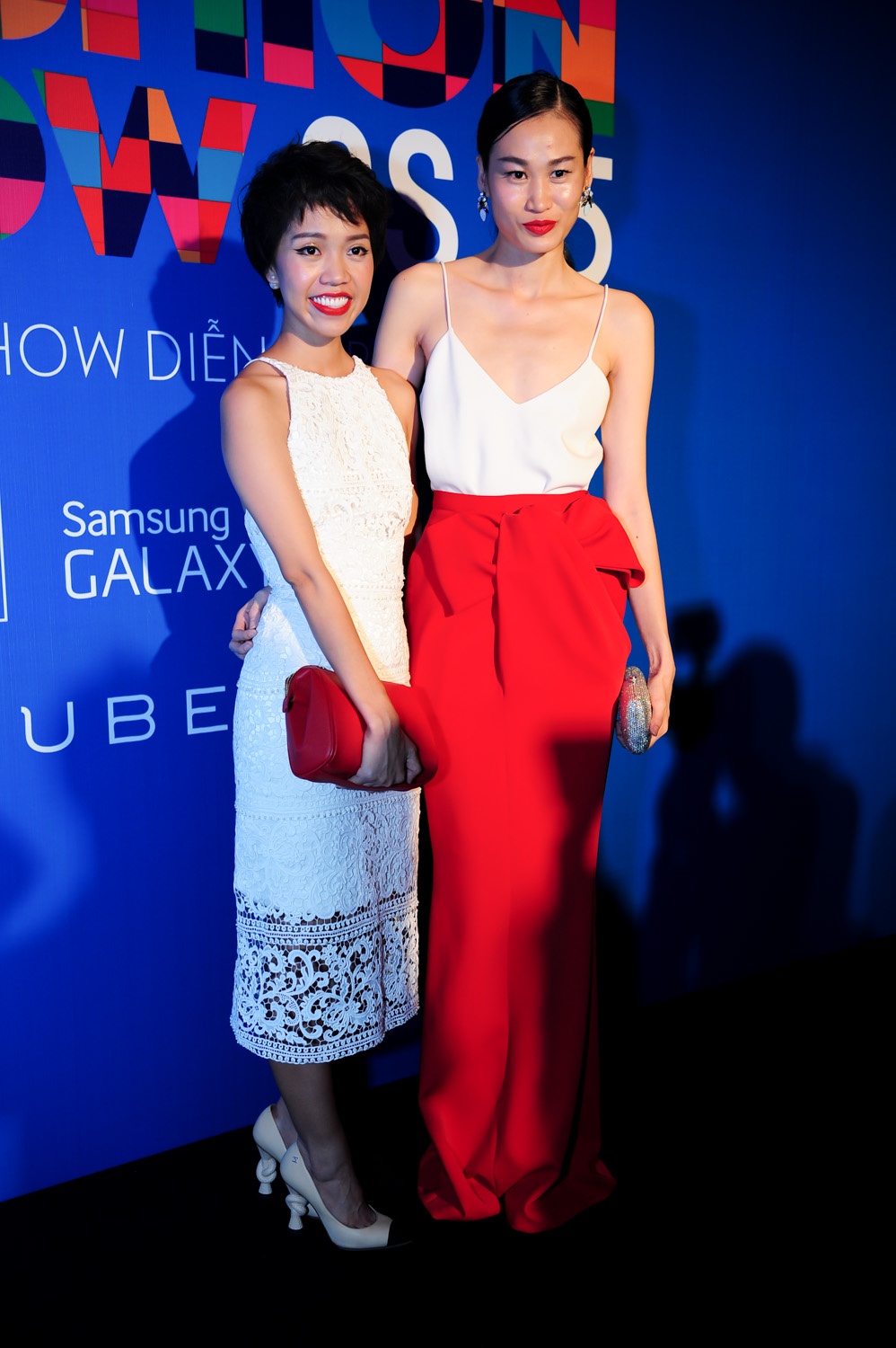 Người mẫu Lệ Hằng nổi bật với bộ váy ánh nhũ, tông trang điểm bắt mắt. Cô chụp ảnh thân thiết cùng giám khảo Hà Anh.