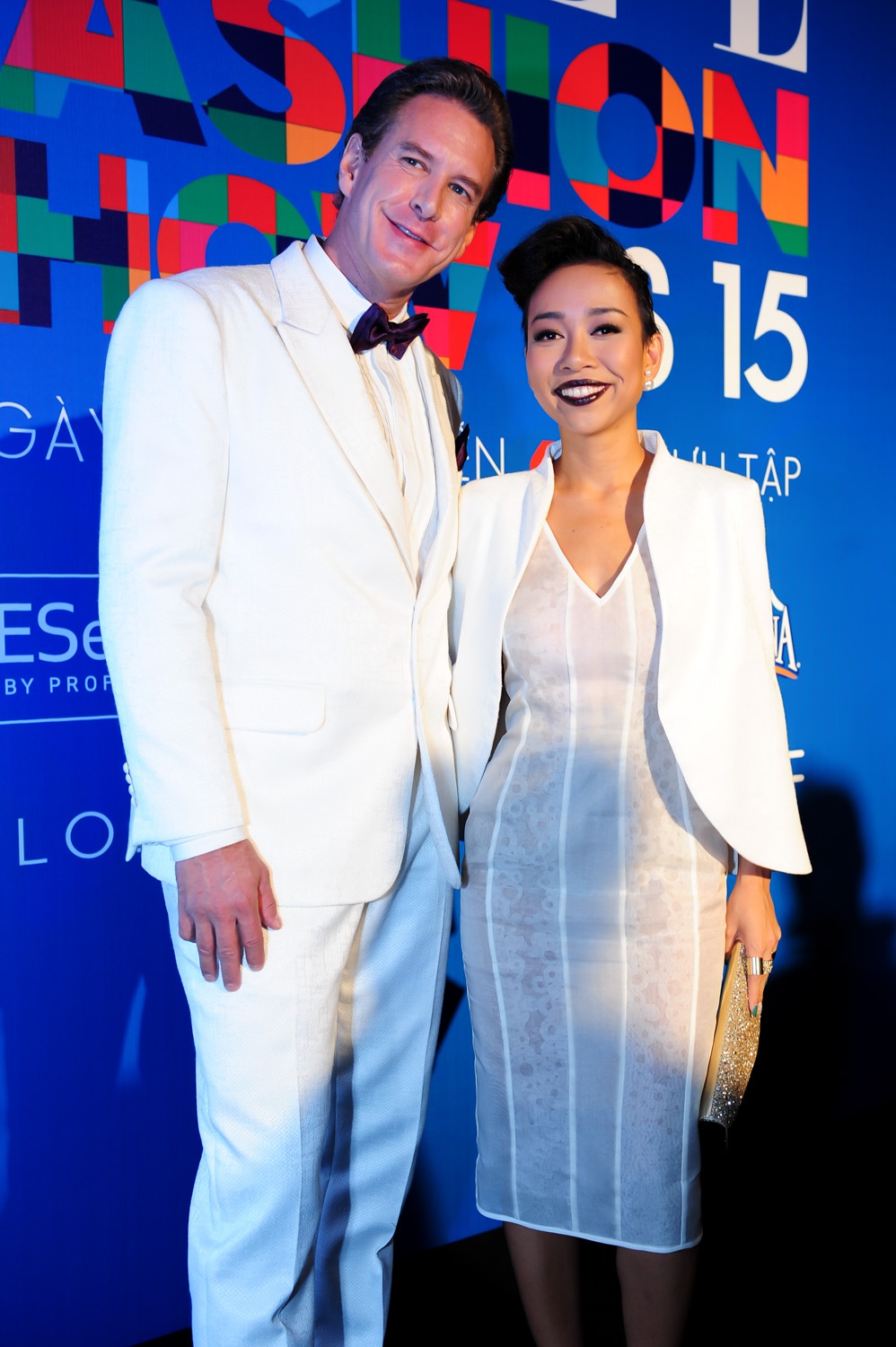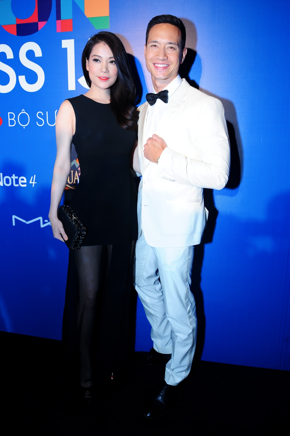 Bà trùm Hương Ga và nam diễn viên Việt kiều xuất hiện nổi bật với trang phục cặp đôi đồng sắc trung tính trắng đen sang trọng.