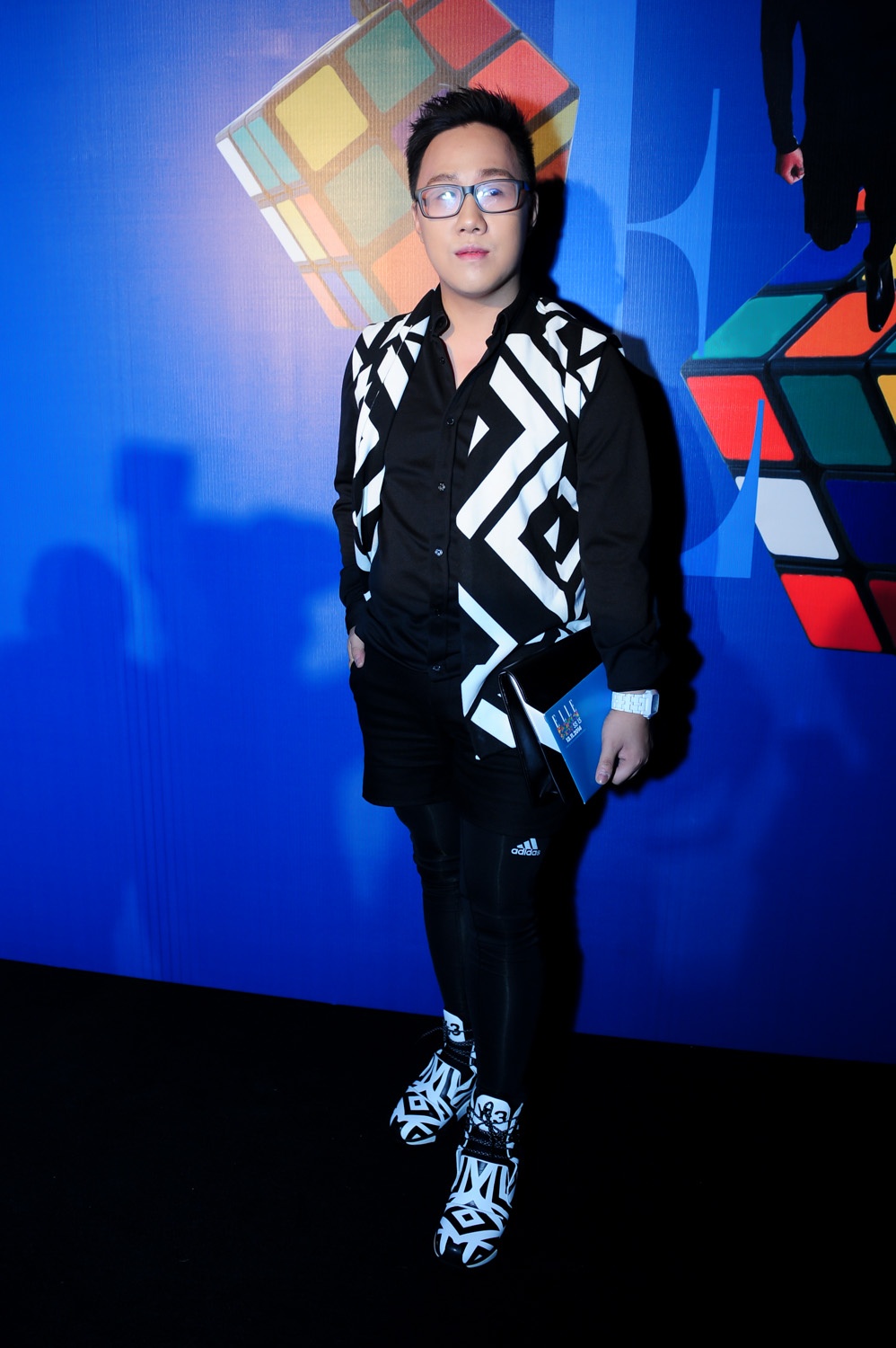 Ca sĩ Trung Quân Idol nổi bật với trang phục họa tiết hình học, kết hợp sáng tạo cùng giày đồng họa tiết.