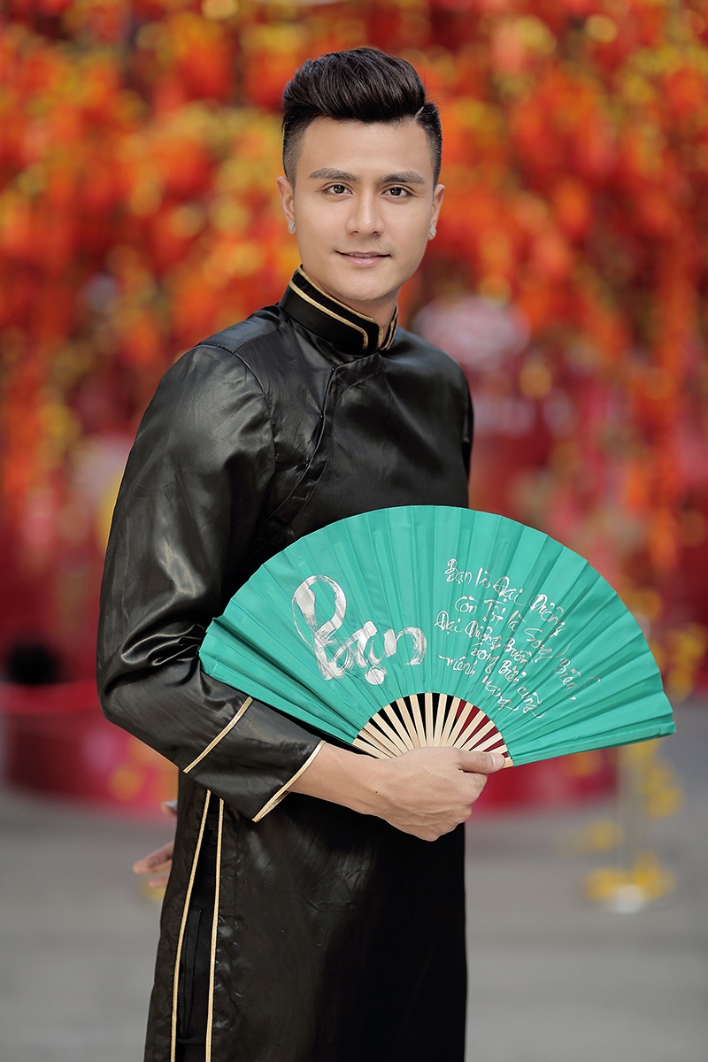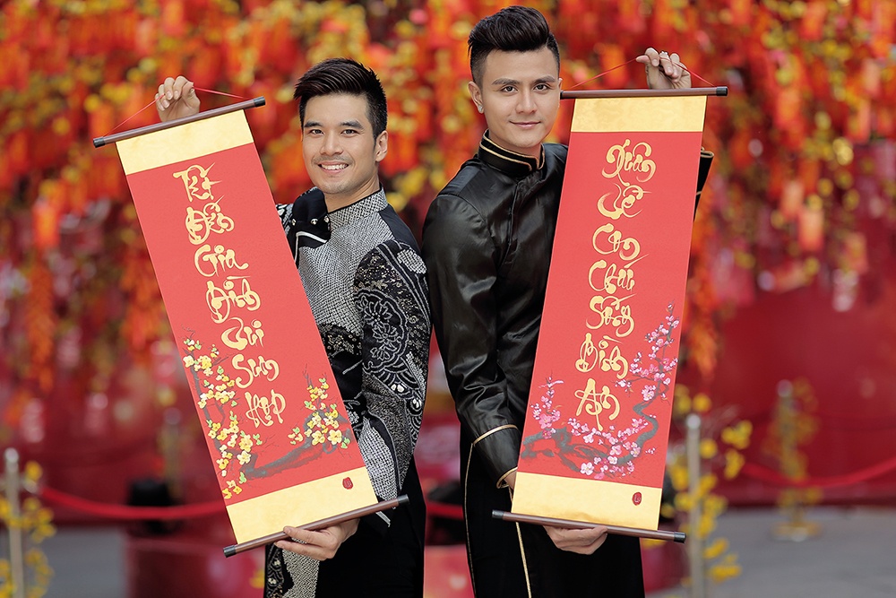 | Siêu mẫu Vĩnh Thụy cũng tham gia một vai lớn trong phim Truy sát. Anh cùng bạn diễn Thiên Nguyễn đọ vẻ điển trai khi diện áo dài truyền thống của nhà thiết kế Võ Việt Chung. |