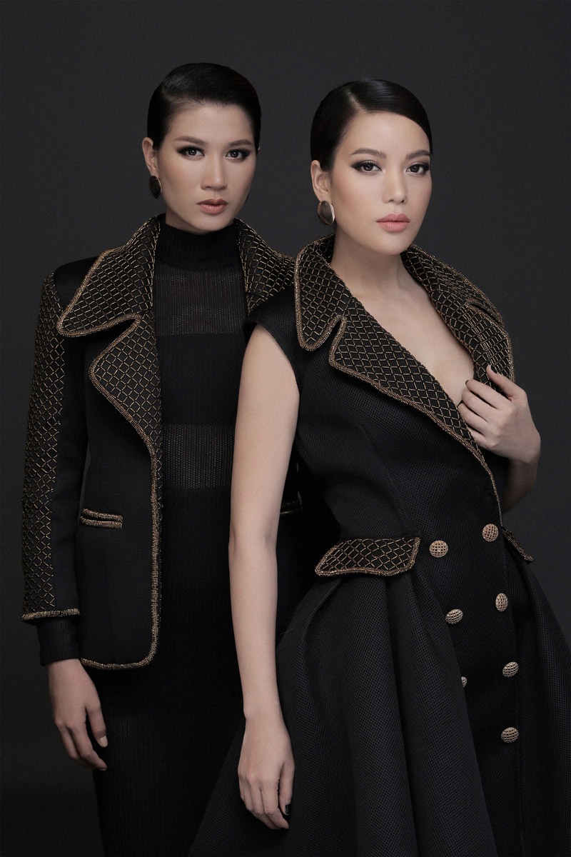 | Tận dụng biểu cảm khuôn mặt để thể hiện hồn của bộ sưu tập, bà mẹ một con luôn tạo sự nổi bật bởi vẻ lạnh lùng, kiêu sa còn cựu người mẫu Trang Trần lại mạnh mẽ, cá tính. Đây cũng là lần đầu tiên cả hai thực hiện chung một bộ hình thời trang ấn tượng. |