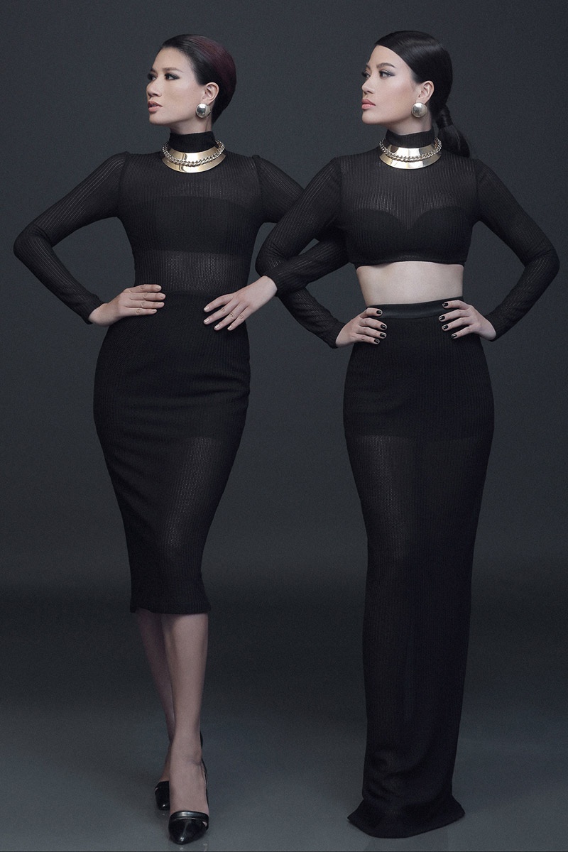 | Mang hai hình ảnh hoàn toàn khác nhau cả trong công việc lẫn cuộc sống đời thường, nhưng khi kết hợp trong bộ sưu tập Song sinh, Trương Ngọc Ánh và Trang Trần đều biết cách hoà quyện để có được những bức hình đẹp và ăn ý nhất. |