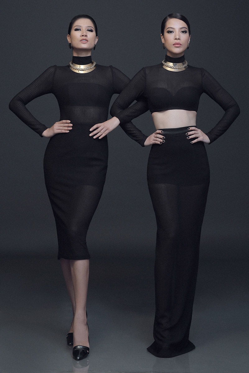 Hai chân dài của phim "Hương Ga" diện trang phục song sinh của NTK Chung Thanh Phong khoe vẻ gợi cảm trong bộ ảnh mới nhất.