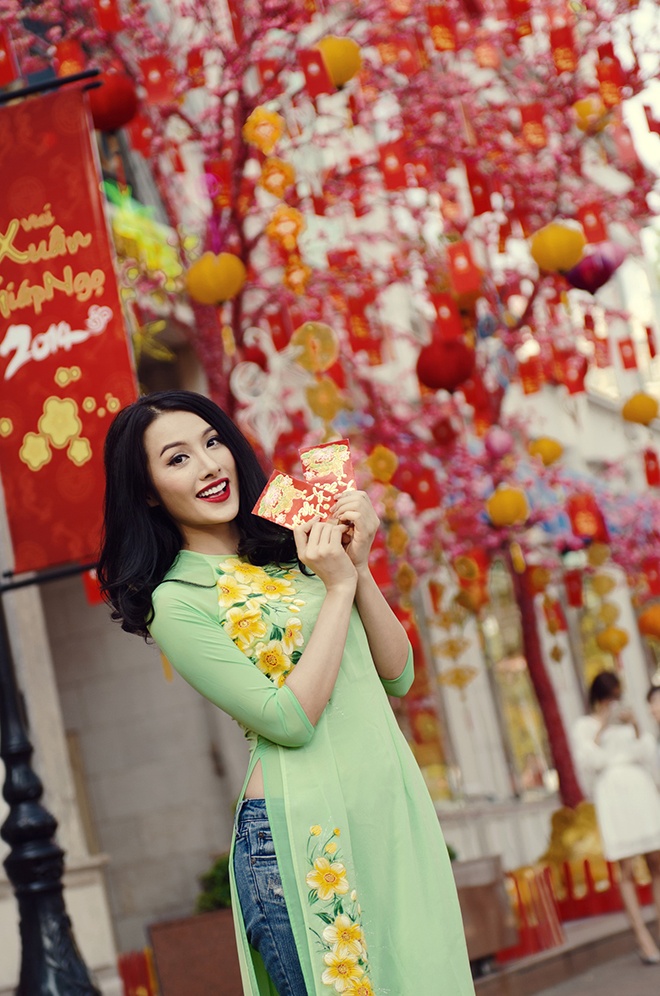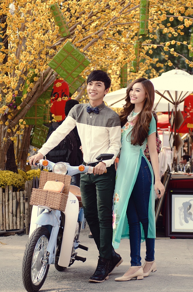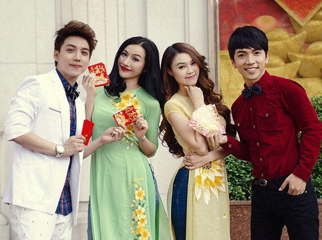 Đường phố Sài thành như rộn ràng hơn trong tiếng cười nói của 4 nhân vật trẻ showbiz Việt tay trong tay xúng xính áo xuân mới.
