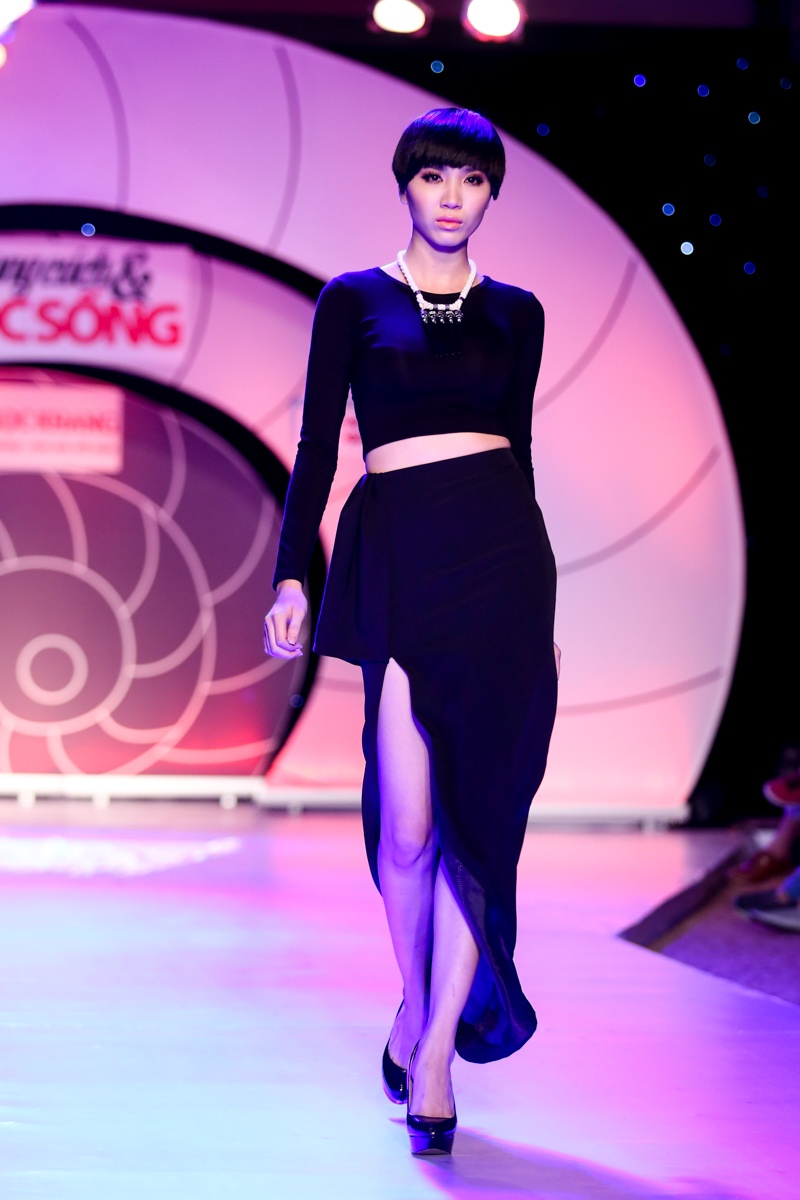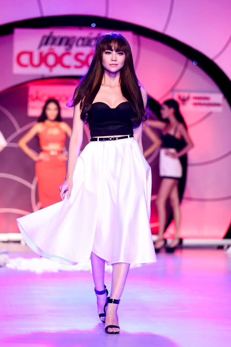 Kế đó, cô biểu diễn thiết kế gợi cảm của Nick Dragon, khoe lợi thế vóc dáng.