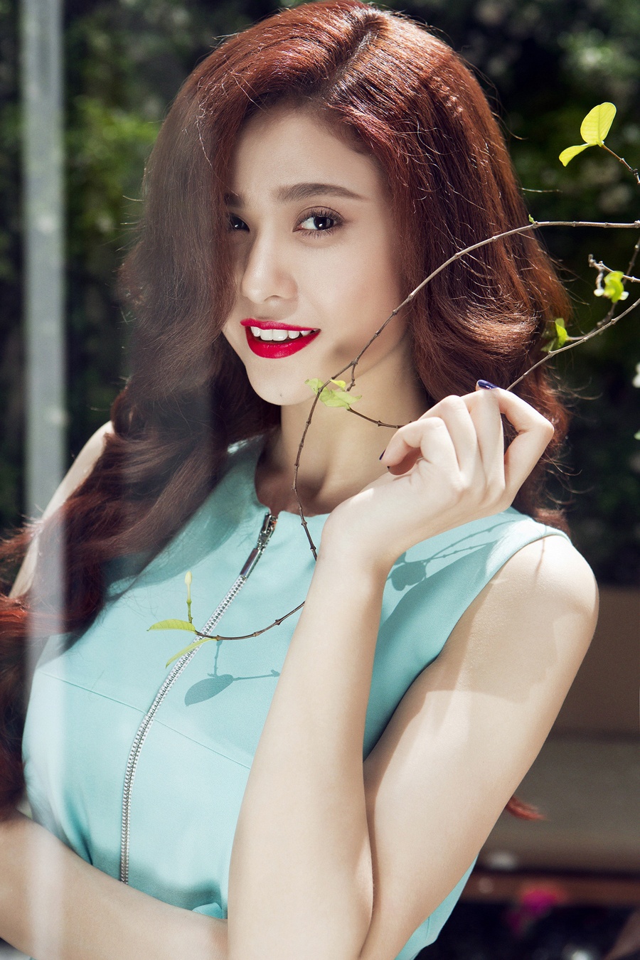 Màu xanh ngọc cũng là một trong những tông màu được Trương Quỳnh Anh yêu thích. Cùng với gam hồng nhã nhặn, xanh mang đến sự tươi mát, nhẹ nhàng xua tan cái nóng mùa hè.
