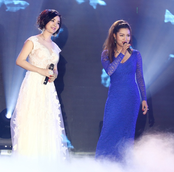 | Hai giám khảo Giáng My và Ngọc Anh dành tặng khán giả tiết mục When you tell me that you love me. |