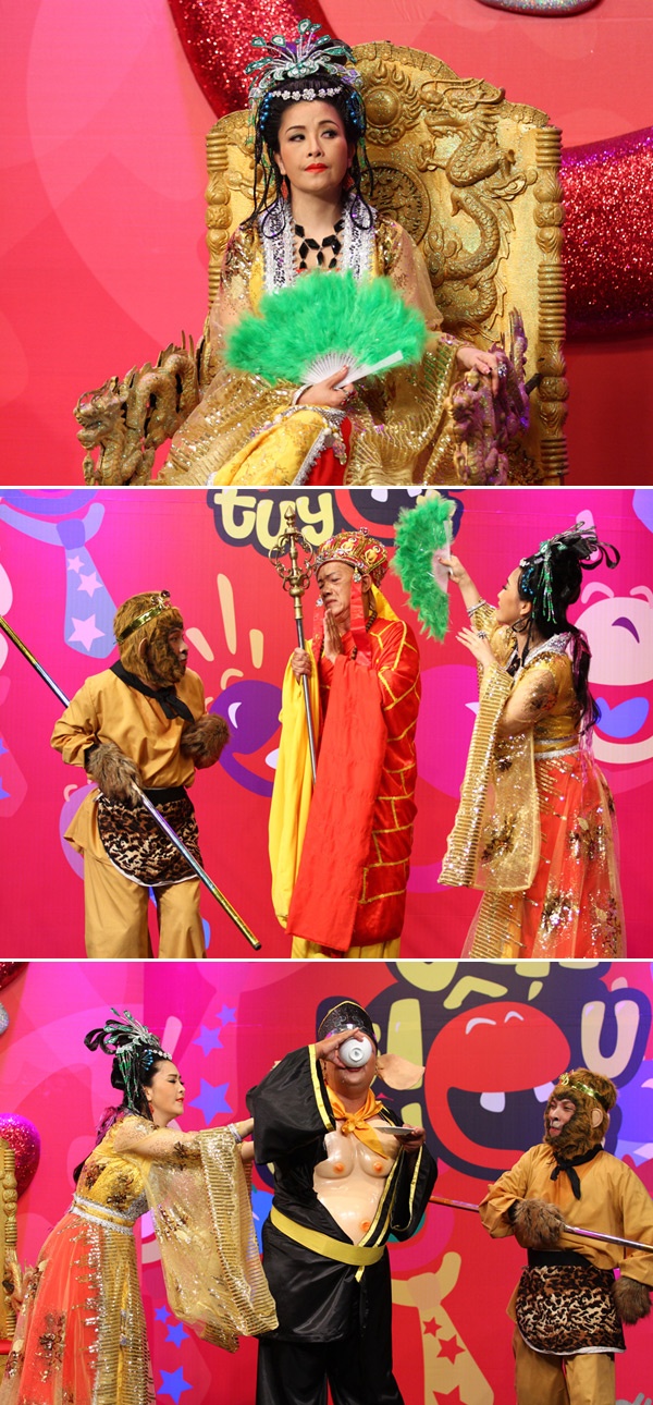 Bên cạnh đó, màn hóa thân thành 3 thầy trò Đường Tăng của Minh Béo, Phú Hải, Dũng Nhí cũng khiến khán giả thích thú bởi nhiều nét tương đồng với bản gốc, từ vóc dáng đến trang phục, cử chỉ, điệu bộ.
