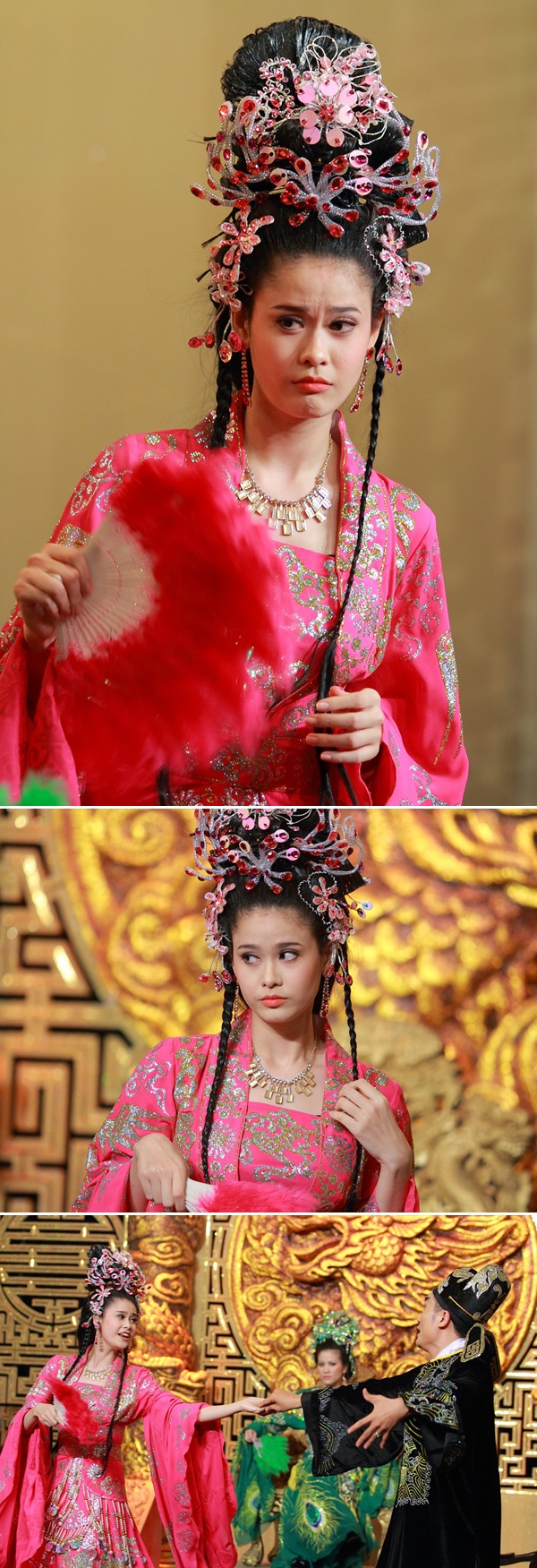 Dù xuất thân là diễn viên, ca sĩ nhưng Trương Quỳnh Anh diễn hài cũng rất "tới", từng khiến khán giả bất ngờ trong Tài, Tiếu, Tuyệt phiên bản trước. Trở lại sân khấu hài lần này, cô vào vai con gái của Vỏ Tắc Hư trong tiểu phẩm được phóng tác từ nhân vật nữ hoàng đế Võ Tắc Thiên.