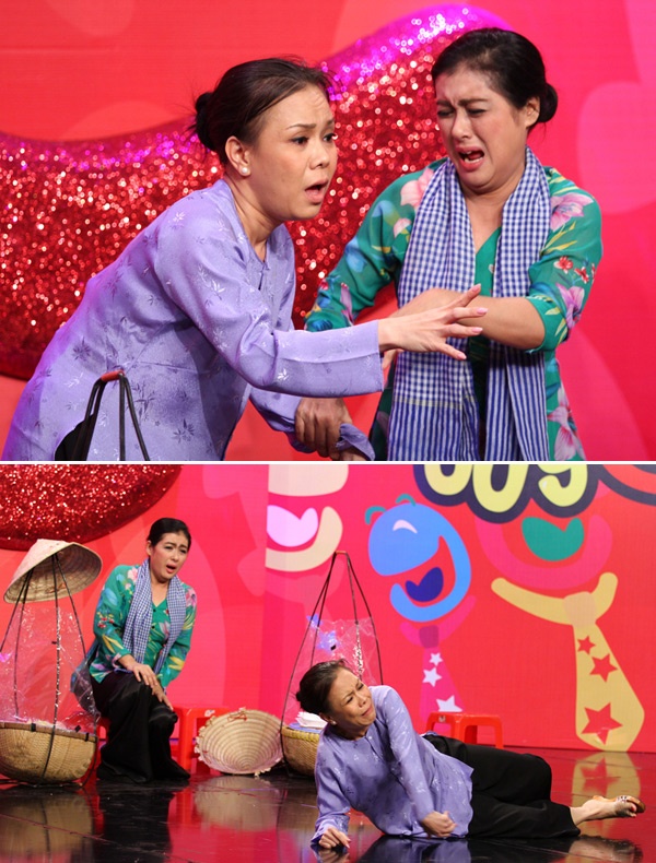 Trong chương trình tuần này (phát sóng trên HTV2 lúc 20h ngày 8/12), với cách kể chuyện sinh động đến từng chi tiết, nữ danh hài Việt Hương khiến khán giả cười lăn cười bò khi tường thuật lại vụ tai nạn giao thông của con trai bà Tư bánh bò do diễn viên Thanh Thủy thể hiện. Dù nhân vật bà Tư thì đau lòng đến ngất xỉu nhưng khán giả lại được trận cười tưng bừng vì cái miệng của bà Tám.
