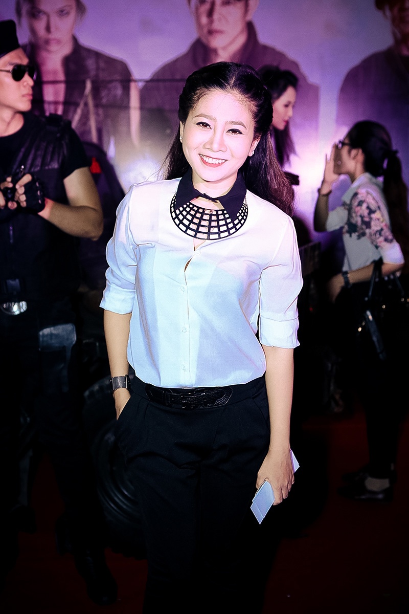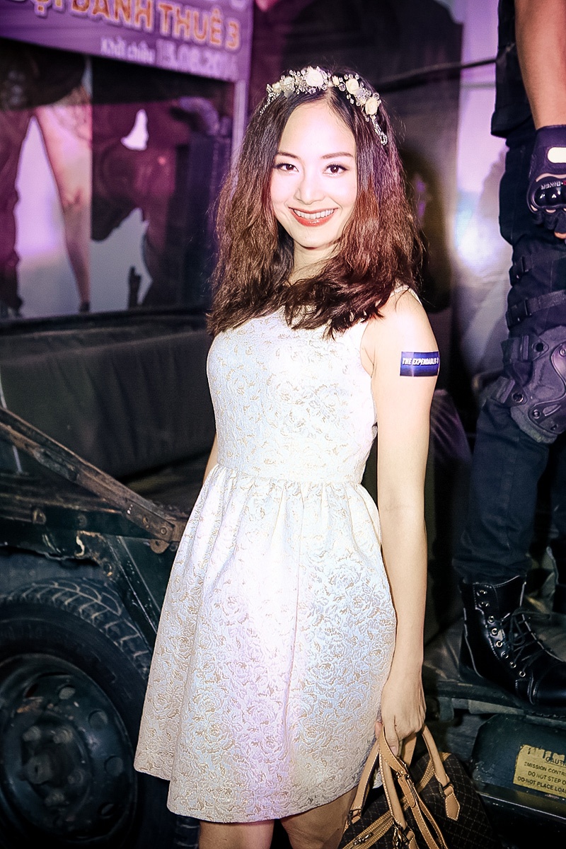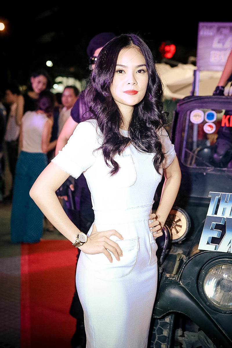 | Dù không diện hàng hiệu như Trà Ngọc Hằng nhưng Trương Quỳnh Anh vẫn gây được chú ý khi chọn trang phục nổi bật, thanh lịch, toát lên vẻ đẹp sang trọng. Nữ diễn viên xuất hiện tại sự kiện thảm đỏ ra mắt Biệt đội đánh thuê 3 một mình lẻ bóng, mà không có ông xã Tim tháp tùng. Trương Quỳnh Anh vừa trở về từ Đà Lạt với những cảnh quay cuối cùng của bộ phim truyền hình mà cô đảm nhận vai chính. |