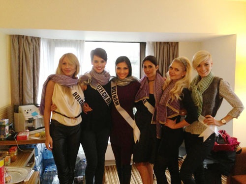 Mới đây, trên Facebook của Trương Thị May vừa đăng một bức ảnh cô cùng các thí sinh Miss Universe 2013 mặc áo in hình quốc kỳ Việt Nam. Hình ảnh thú vị này đã thu hút rất nhiều sự chú ý và đánh giá cao từ người hâm mộ vì chỉ chưa tới một tuần có mặt tại Nga, ngoài việc xuất hiện thật rạng rỡ, Trương Thị May còn rất chăm chỉ có những hành động nhỏ nhưng đầy ý nghĩa như tặng tràng hạt Bồ đề, khăn rằn Nam bộ và mới đây nhất là tặng áo cờ đất nước cho các thí sinh hoa hậu khác.