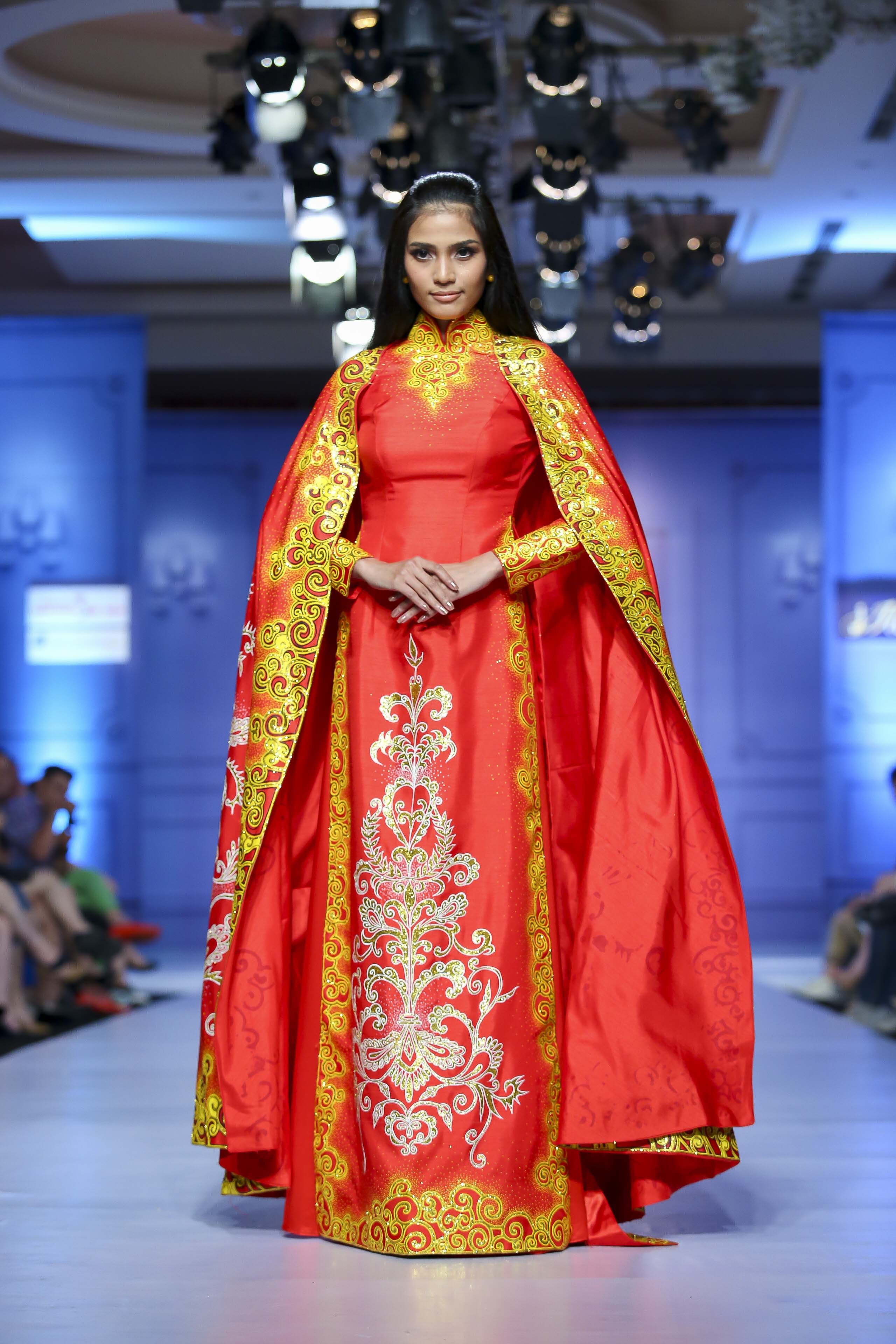 | Tối 29/9, Trương Thị May tham gia trình diễn bộ sưu tập áo dài của NTK Minh Châu tại chương trình Phong cách & Cuộc sống, ở TP HCM. Trên sàn diễn, Á hậu Dân tộc đảm nhận vai trò chốt màn ấn tượng. "Ngôi sao ăn chay hấp dẫn nhất châu Á" diện áo dài cưới tông đỏ dạng cape độc đáo và lạ mắt. |