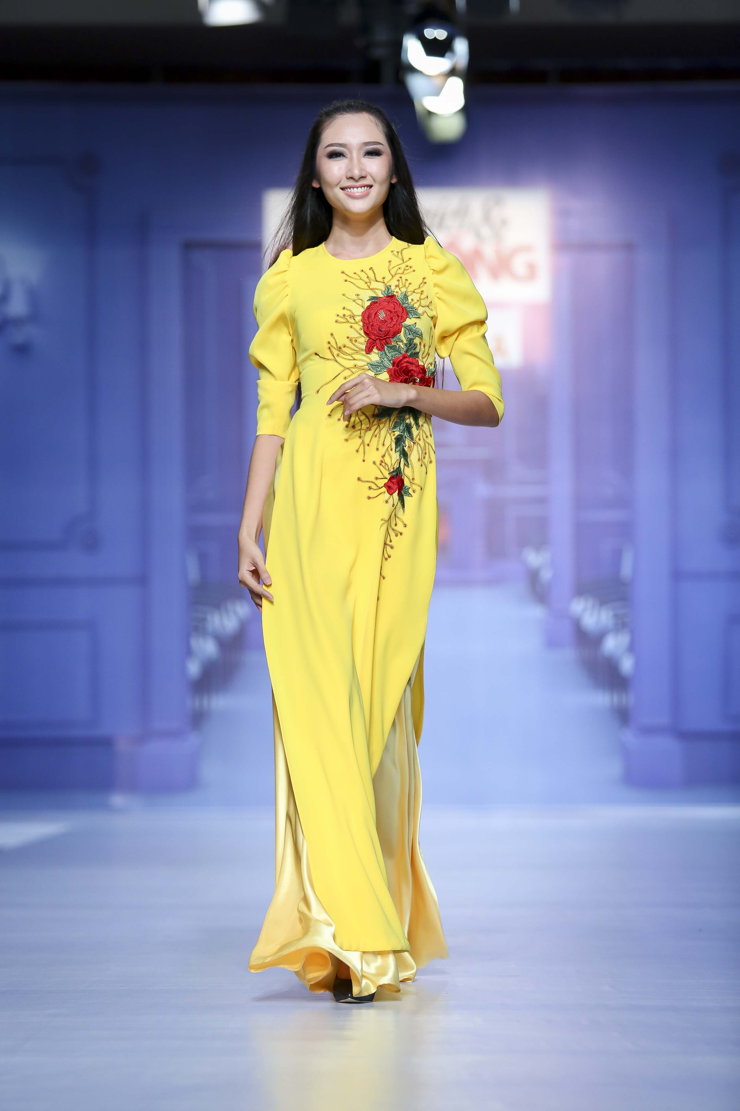 | Bộ sưu tập áo dài mùa thu của Minh Châu hướng đến tông màu bắt mắt, trẻ trung và không kém phần cổ điển. Nhiều chi tiết được cách tân để làm mới phom áo truyền thống. |