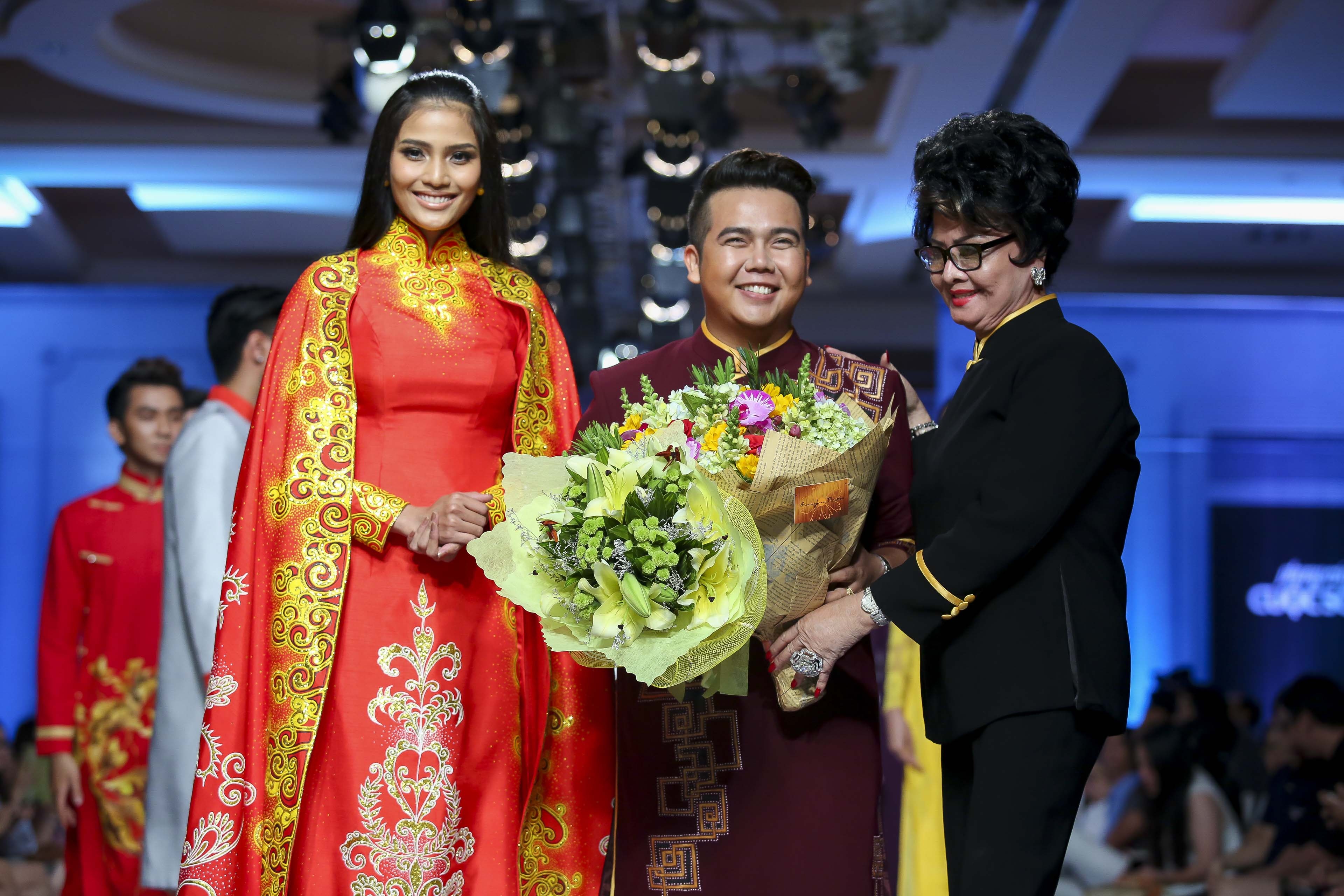 | Nhà thiết kế Minh Châu cùng Trương Thị May chào chốt màn show diễn. |