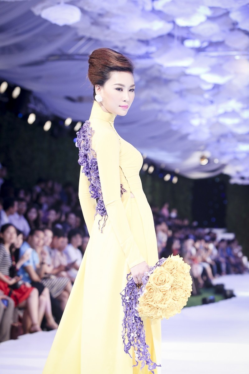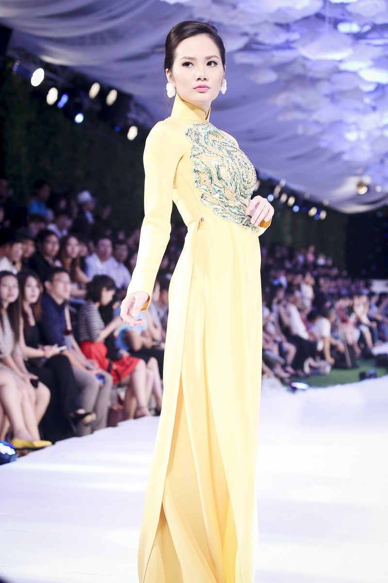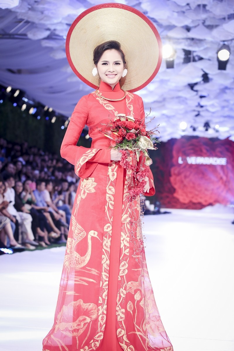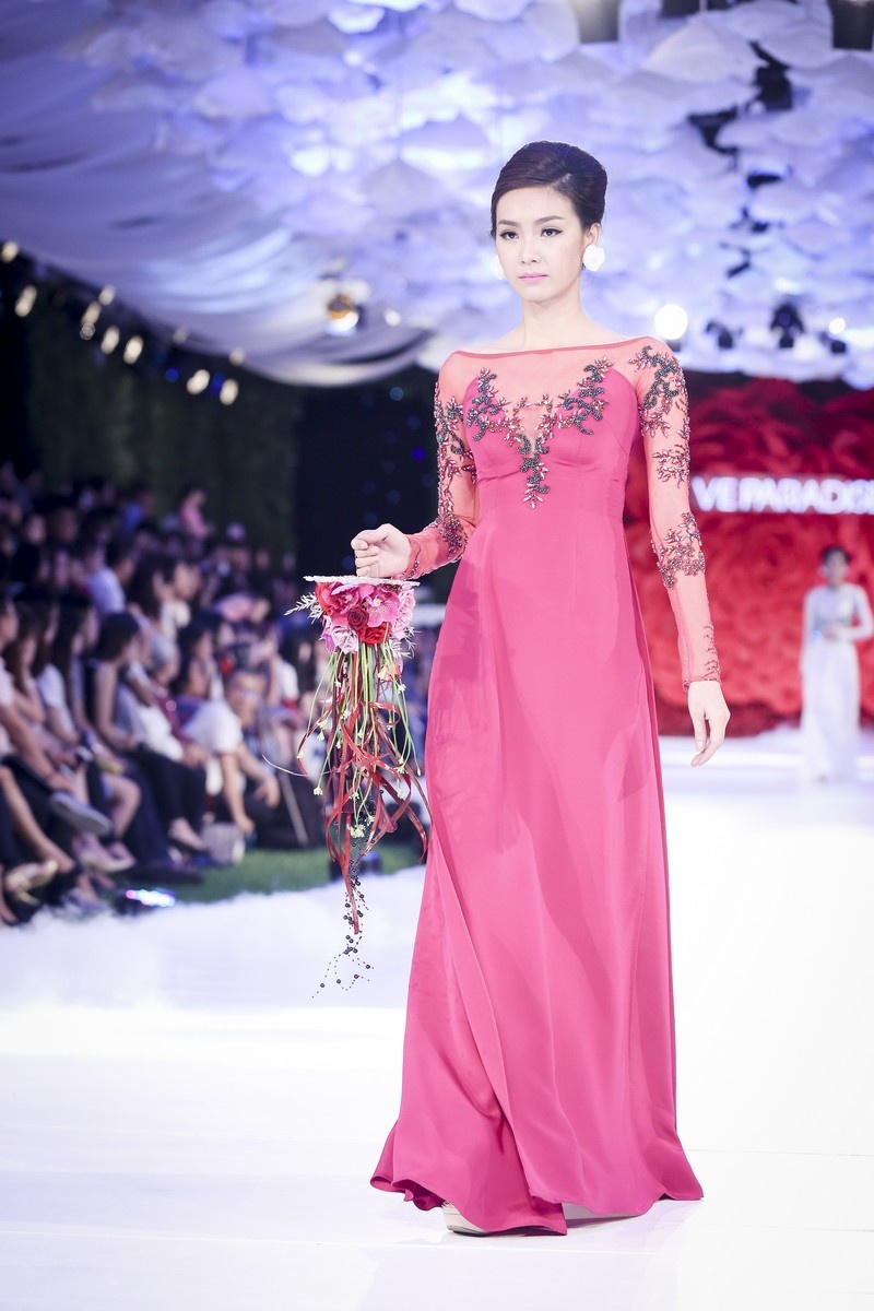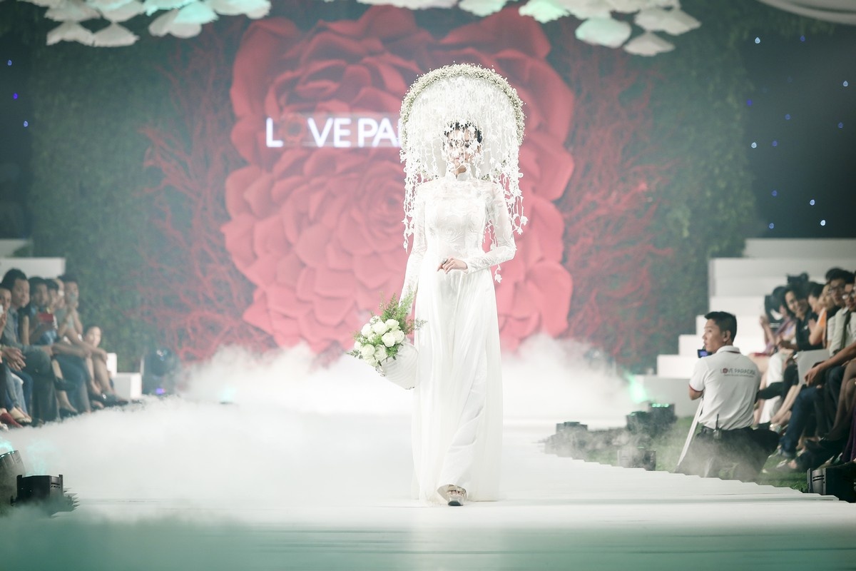| Tối 20/4, NTK Thơ Đinh giới thiệu BST áo dài cưới - Hoa ngọc tại triển lãm cưới Love Paradise 2014. Trong đó, Trương Thị May, Trúc Diễm cùng đảm nhận vai trò vedette mở màn show diễn ấn tượng. |