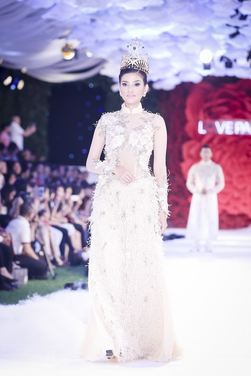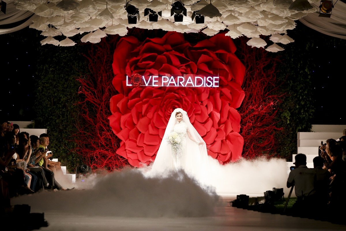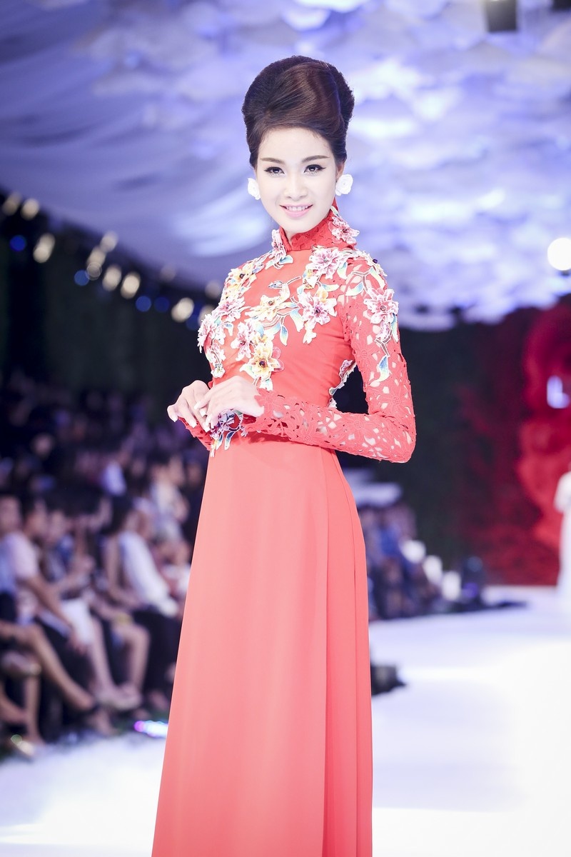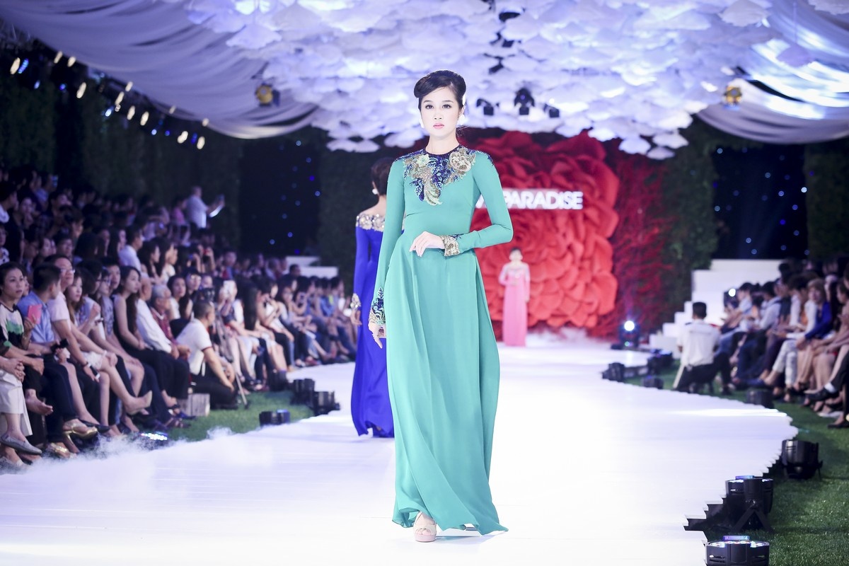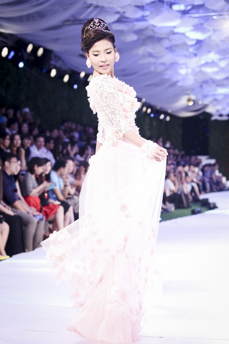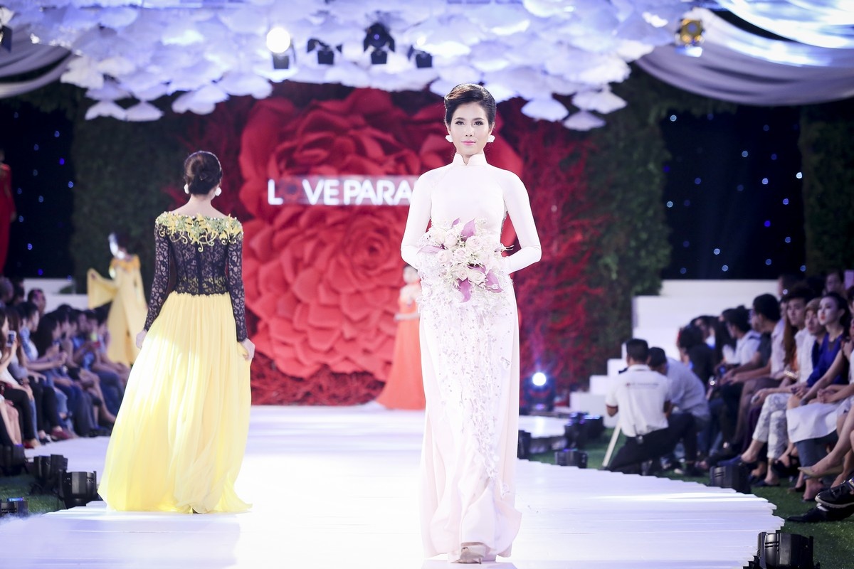 | Tối 20/4, NTK Thơ Đinh giới thiệu BST áo dài cưới - Hoa ngọc tại triển lãm cưới Love Paradise 2014. Trong đó, Trương Thị May, Trúc Diễm cùng đảm nhận vai trò vedette mở màn show diễn ấn tượng. |