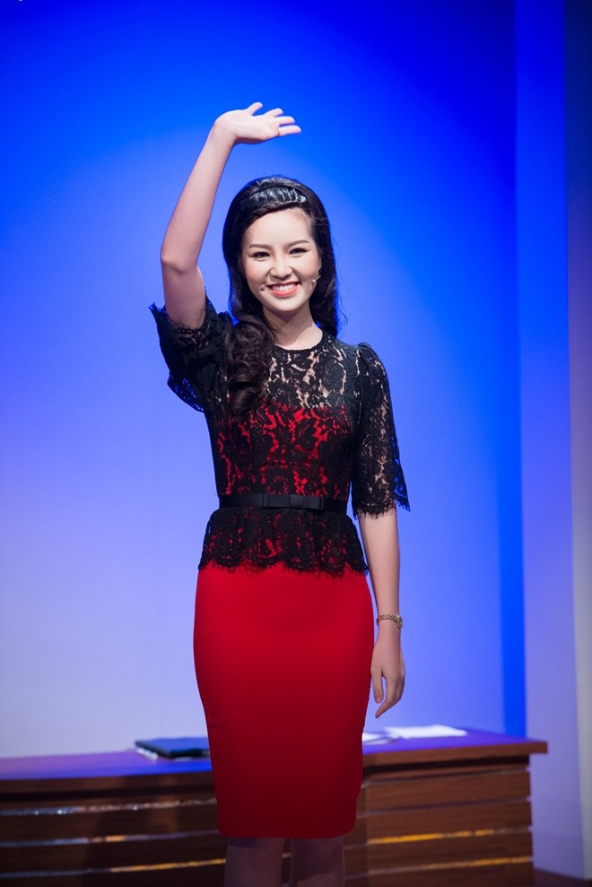 Á hậu Thụy Vân nhận được nhiều lời khen về hình ảnh thanh lịch, tinh tế khi tái xuất showbiz Việt với vai trò MC trong thời gian gần đây. Tuần vừa rồi, người đẹp Hà thành trông duyên dáng và thanh nhã trong bộ đầm kết hợp tông đỏ - đen ăn ý. Chân váy gam đỏ vừa vặn vóc dáng, còn thân áo chất liệu ren mang lại vẻ kiêu sa, kiều diễm cho người mặc, thắt lưng nơ nhỏ nhắn tạo điểm dừng tinh tế cho tổng thể.