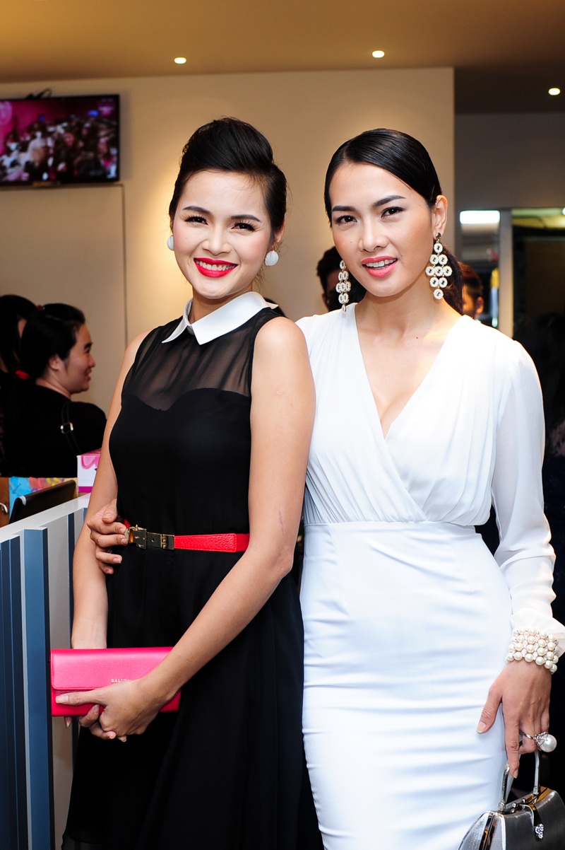 Trở về từ cuộc thi ''Hoa hậu Hoàn vũ 2013'', người đẹp đắt show dự kiện hơn trước, cô xuất hiện tự tin tại buổi khai trương shop thời trang của bạn thân.