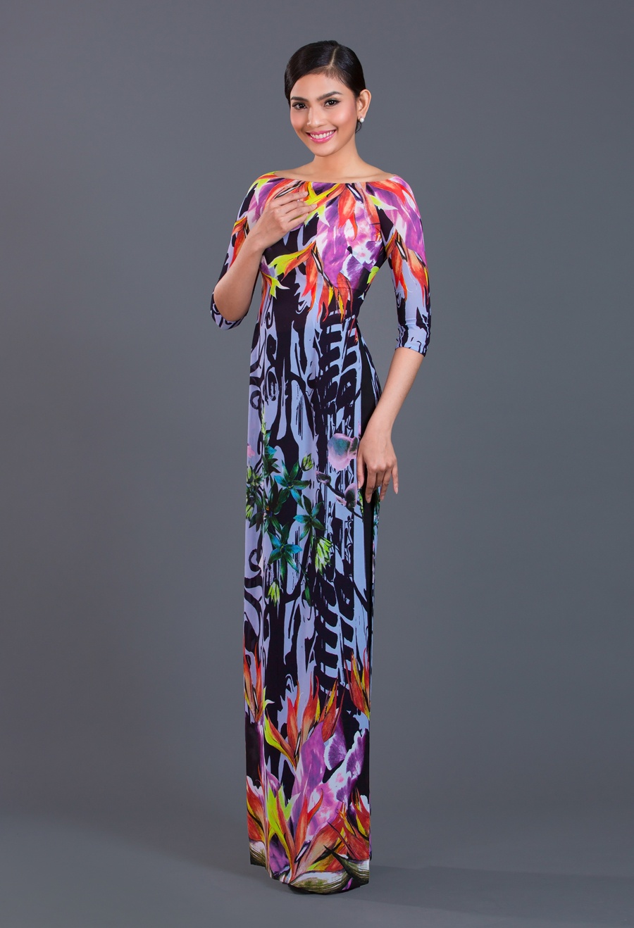 | Sự nhẹ nhàng của hoa văn, họa tiết, chất liệu co giãn, thoáng khí tốt, in màu công nghệ cao, sắc nét giúp áo dài càng trở nên đa dạng và tiện dụng hơn trong cuộc sống thường nhật. |