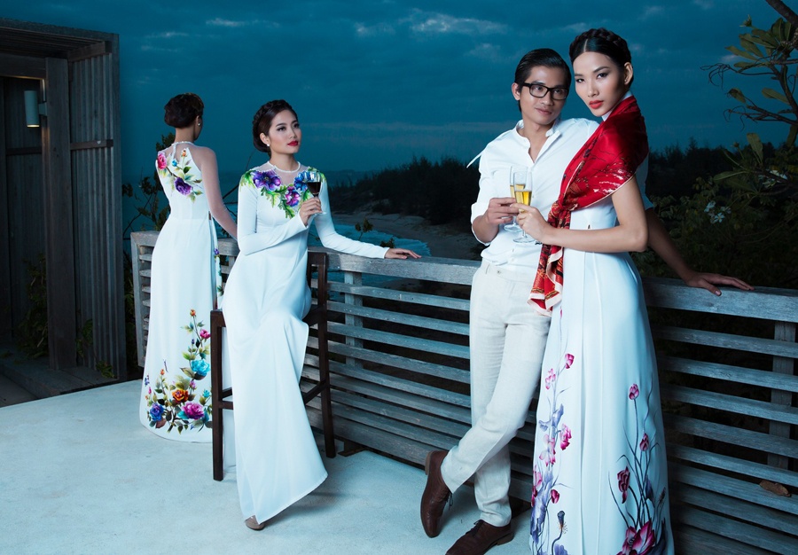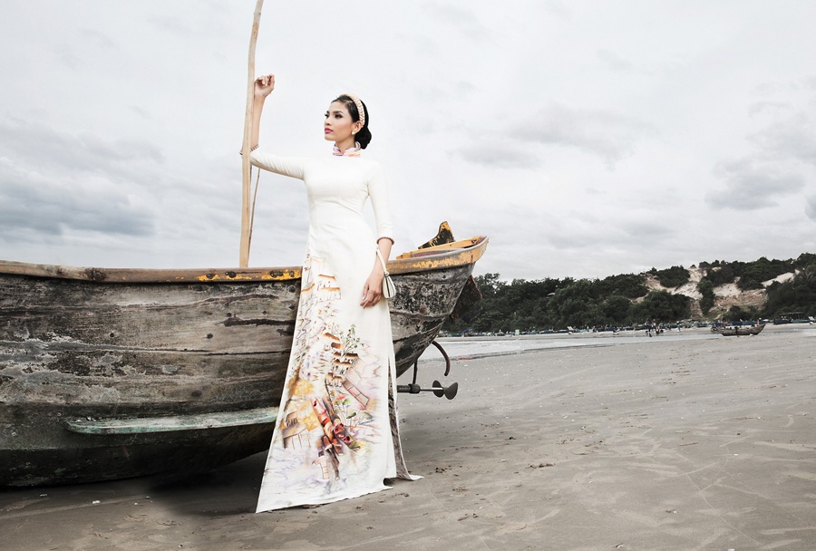 | Để thực hiện bộ ảnh mới, Trương Thị May cùng ê-kíp và nhiều người mẫu đã đến Phan Thiết ghi lại khoảnh khắc đẹp. Trang phục chính là áo dài nhiều màu sắc của nhà thiết kế Đinh Văn Thơ. |