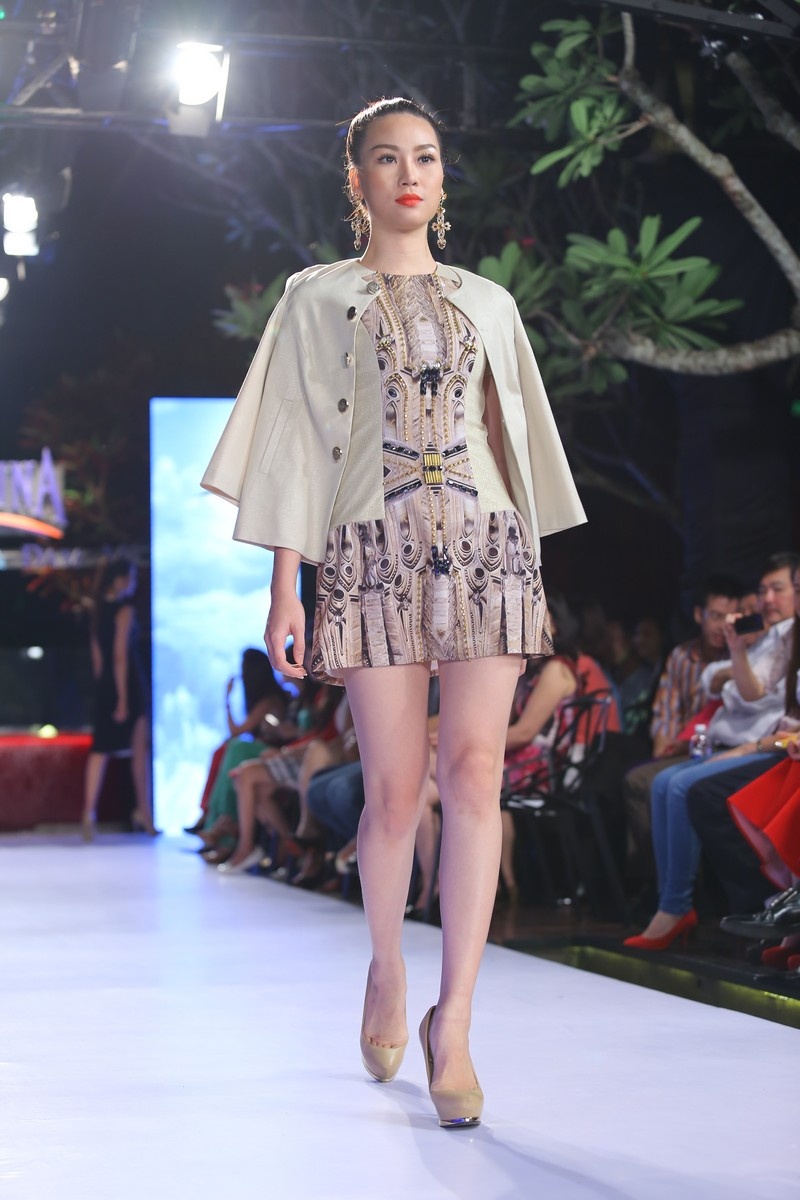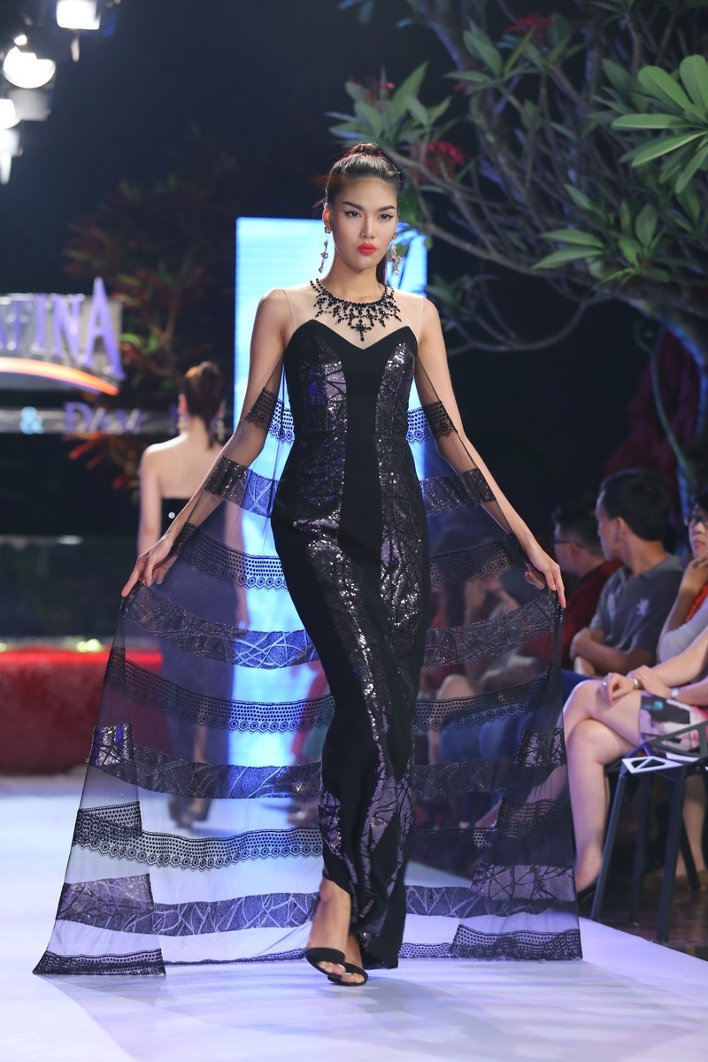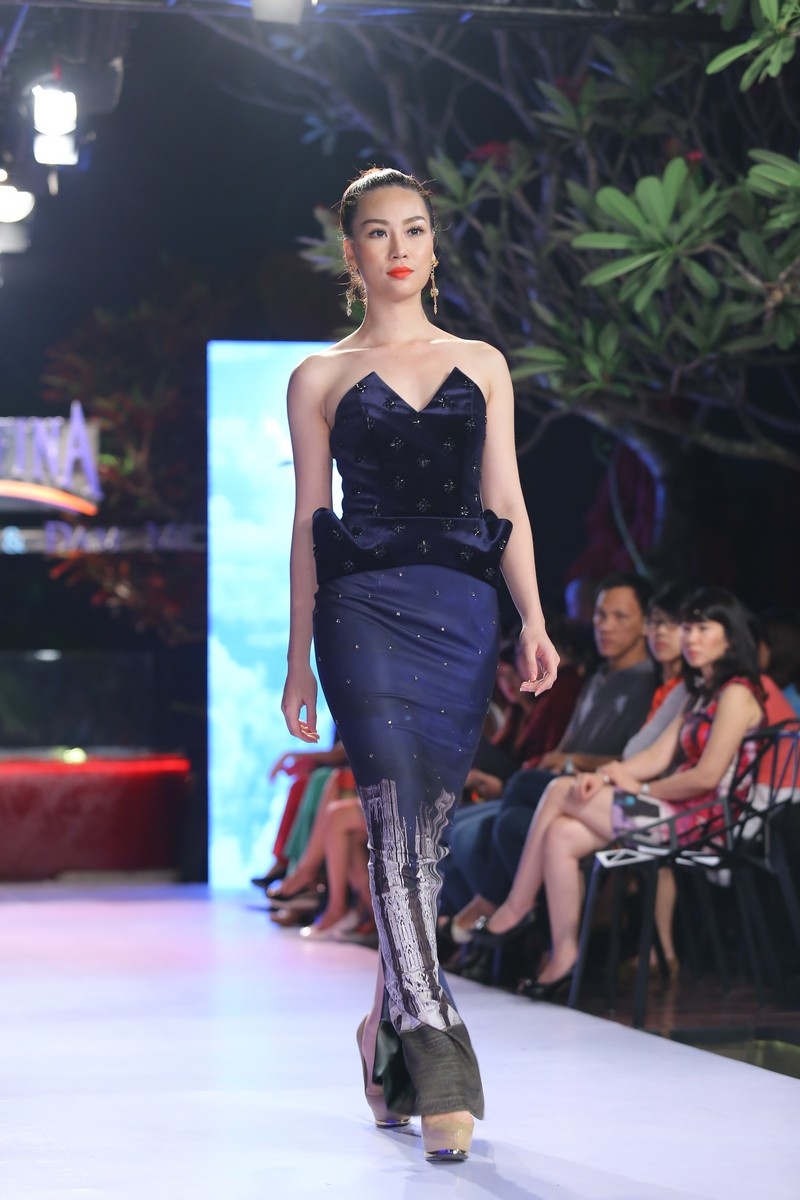 Trên sàn diễn thời trang tối 27/12, á hậu các dân tộc Việt Nam 2007 lộ khuyết điểm tại vùng tay kém thon gọn khi cô giữ vai trò vedette trình diễn một mẫu váy gợi cảm.