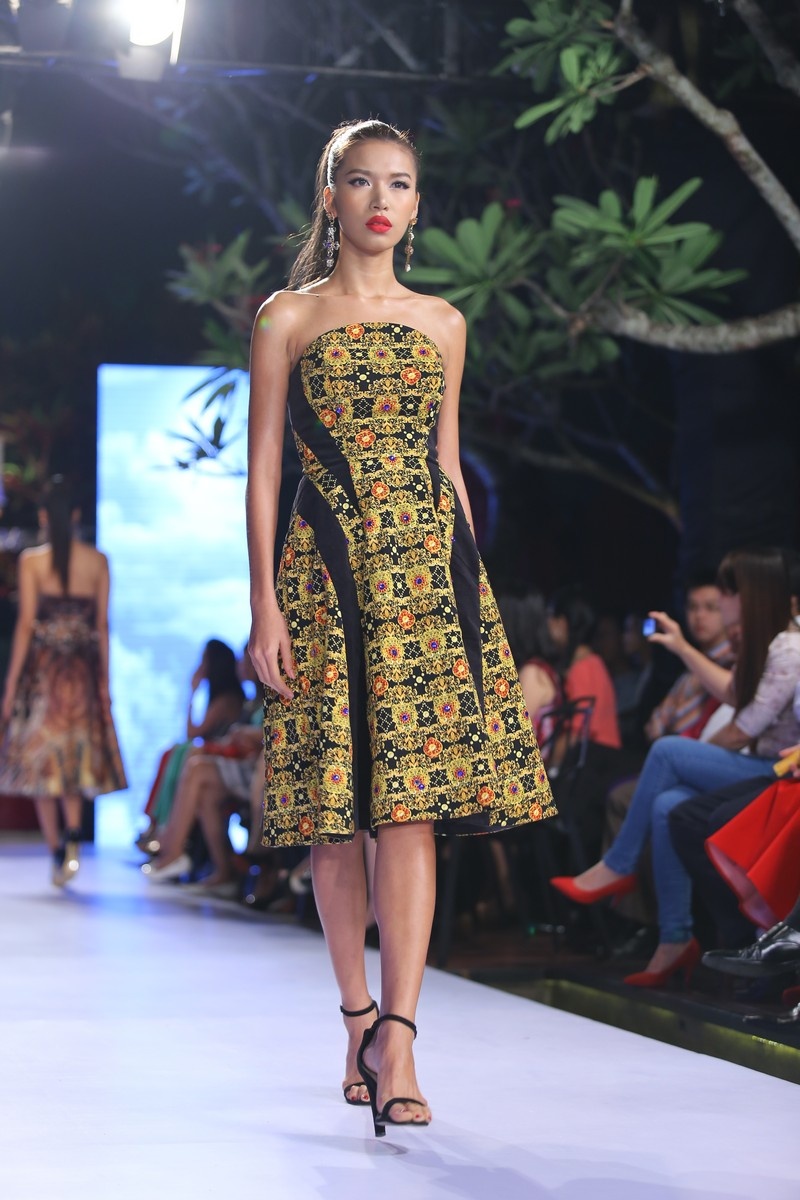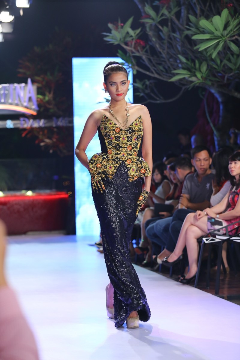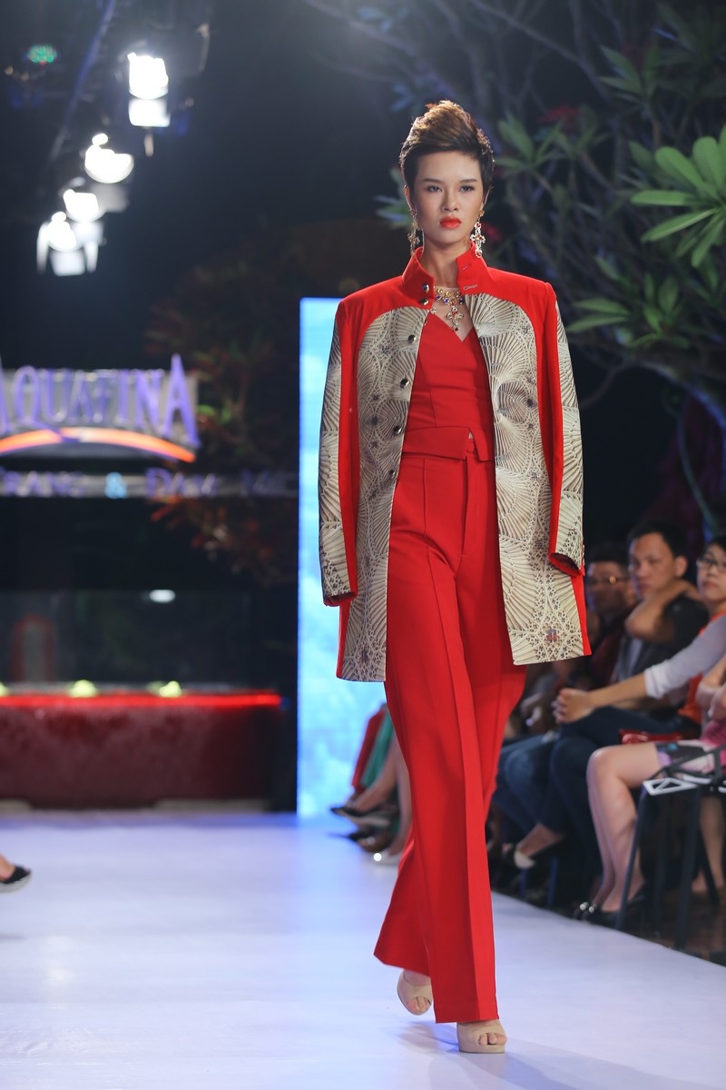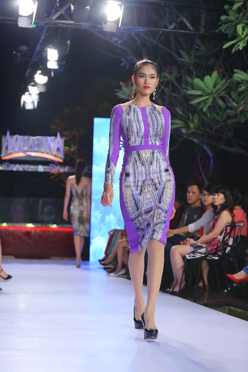 Trên sàn diễn thời trang tối 27/12, á hậu các dân tộc Việt Nam 2007 lộ khuyết điểm tại vùng tay kém thon gọn khi cô giữ vai trò vedette trình diễn một mẫu váy gợi cảm.