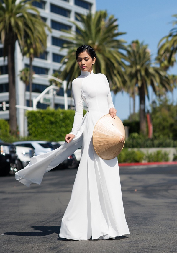 Nhân chuyến lưu diễn tại Mỹ vừa qua, Trương Thị May cũng chọn chiếc áo dài trắng tinh khôi để chụp một bộ ảnh dạo phố xinh đẹp. Với cô dù đi đâu, ở đâu thì nét văn hóa, hình ảnh người phụ nữ Việt đằm thắm trong tà áo dài vẫn nên được phát huy.