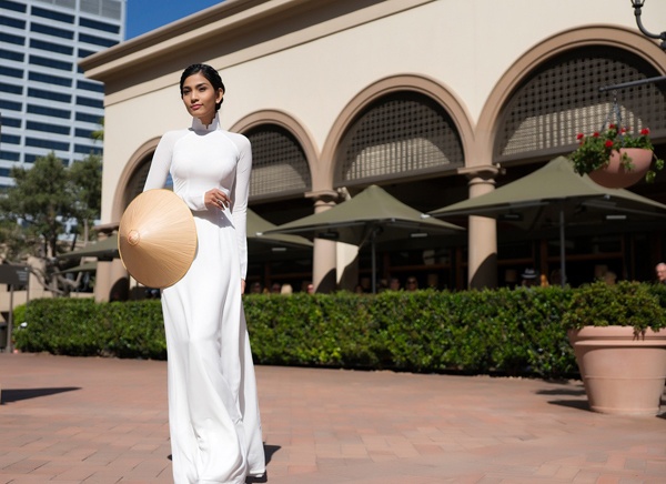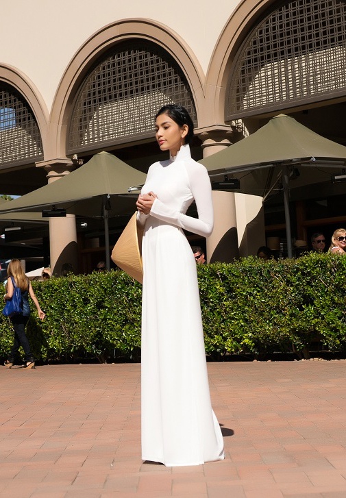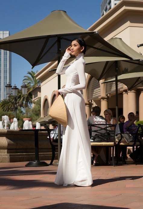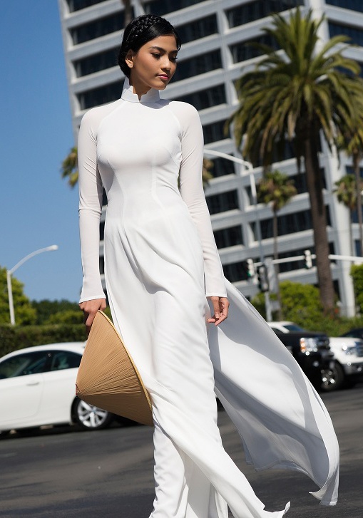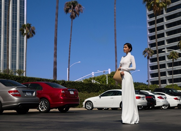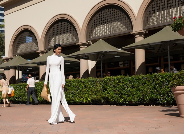 Trương Thị May nền nã áo dài trắng trên đường phố Mỹ