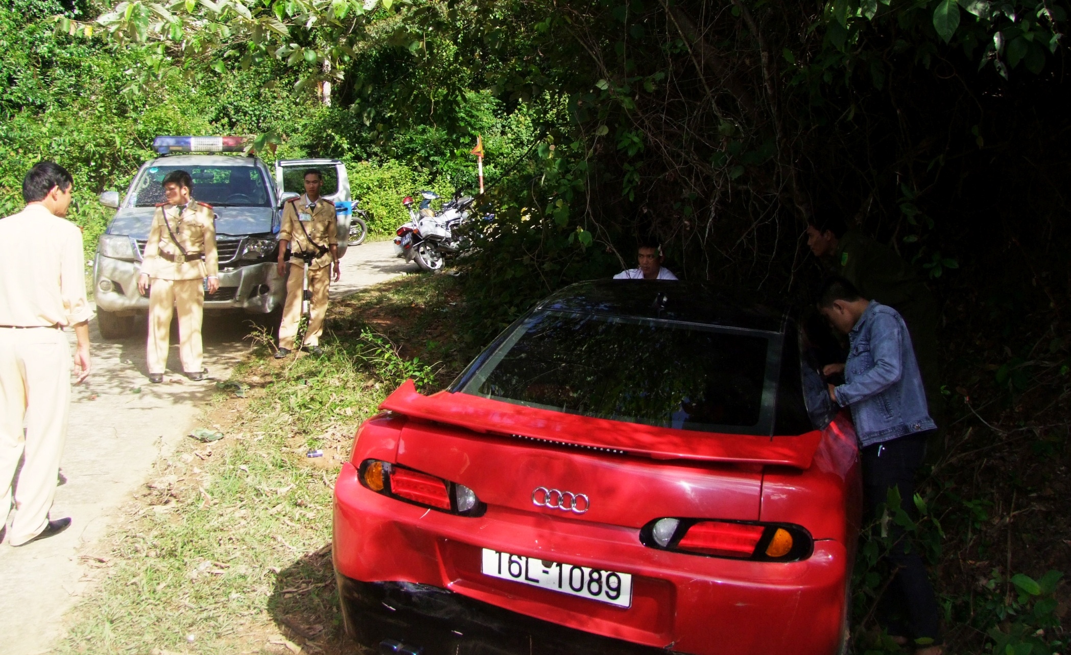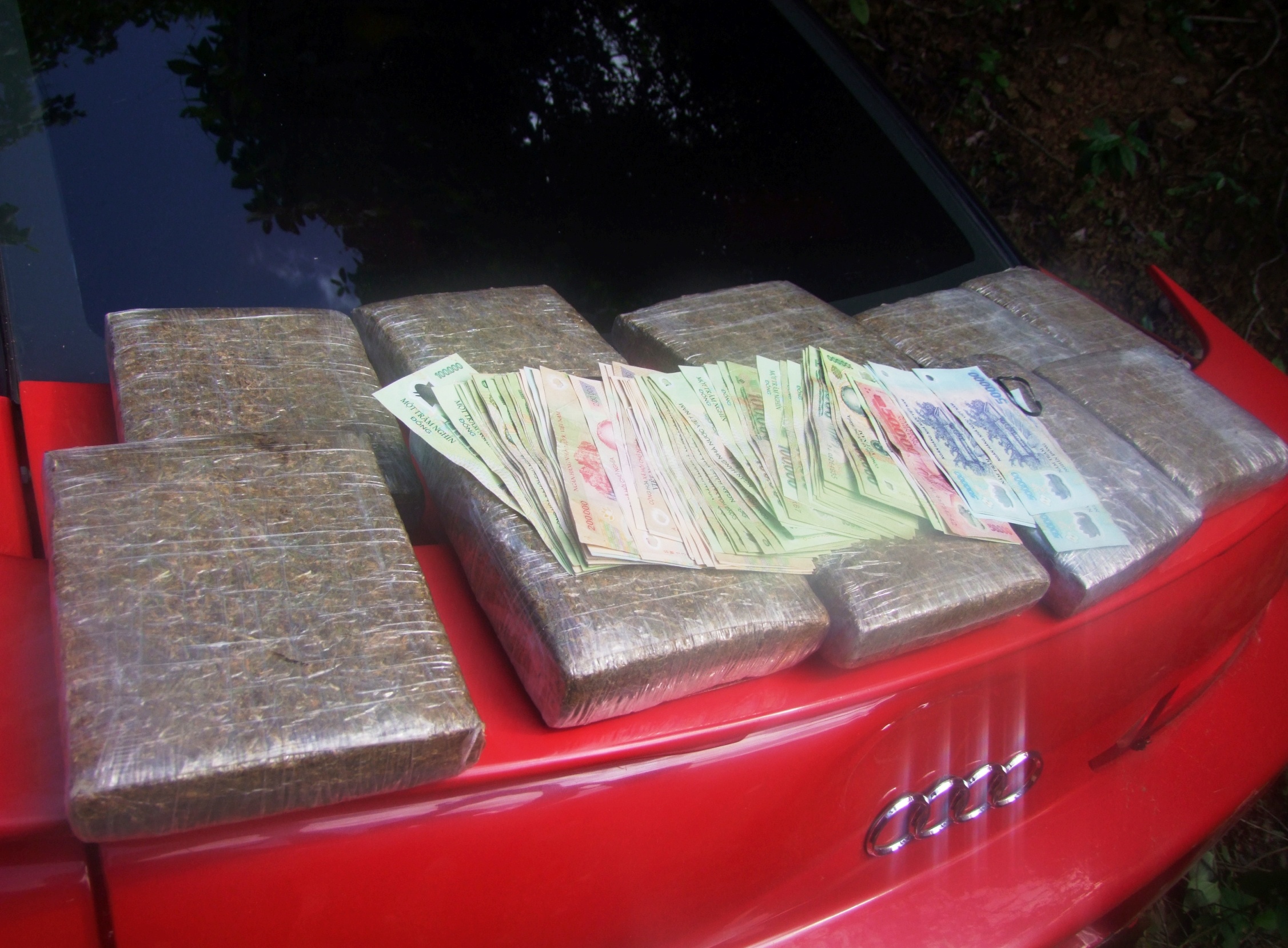 Nghi vấn trên xe chở hàng cấm, đại uý Nguyễn Ngọc Tân yêu cầu Hùng cho kiểm tra phương tiện. Mở cốp sau chiếc Audi, cảnh sát phát hiện bao tải đựng nhiều khối chữ nhật, nghi là ma tuý.