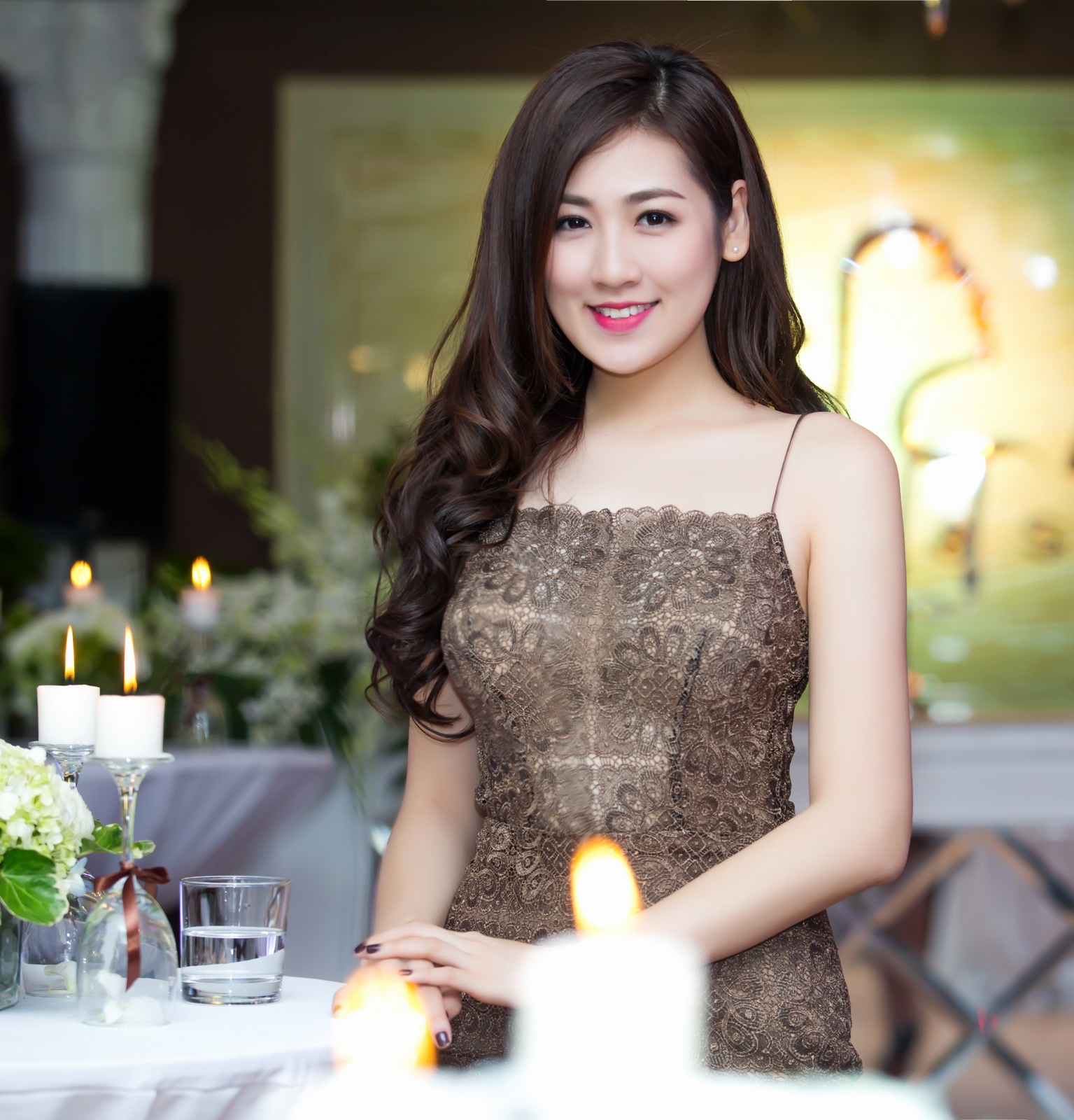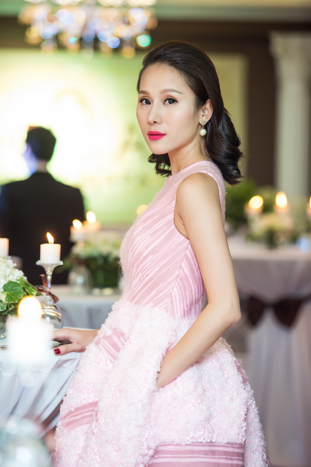 | Cô mặc bộ váy ren điệu đà, khoe vai trần quyến rũ trước ống kính. Tú Anh trở thành tâm điểm thu hút sự chú ý của đông đảo khách mời tới tham dự bởi vẻ đẹp đằm thắm và mặn mà. |