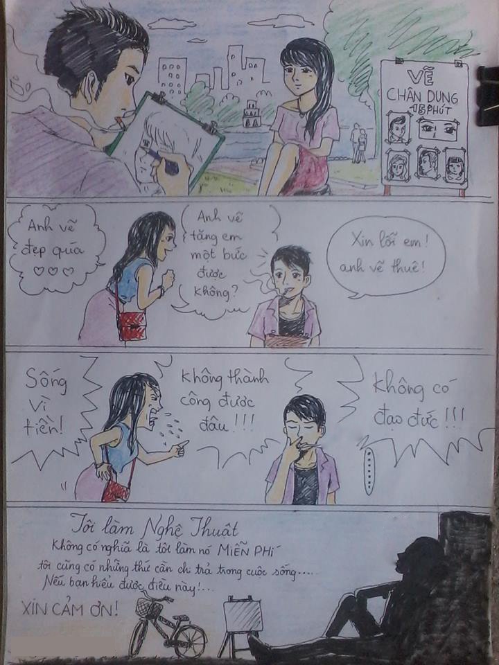 Theo đó, một cô gái ngỏ ý với Thái Thông, "Anh vẽ tặng em bức hình đi. Anh vẽ đẹp quá". 9X trả lời: "Xin lỗi anh vẽ thuê".