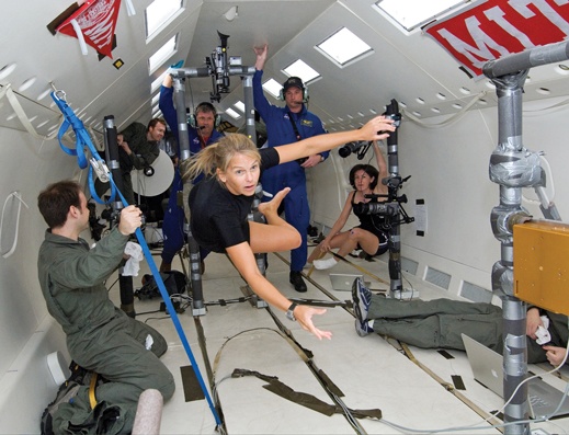 | Giáo sư Dava Newman tham gia một cuộc thí nghiệm trên chiếc máy bay không trọng lực của NASA năm 2007. Ảnh: MIT Technology Review. |