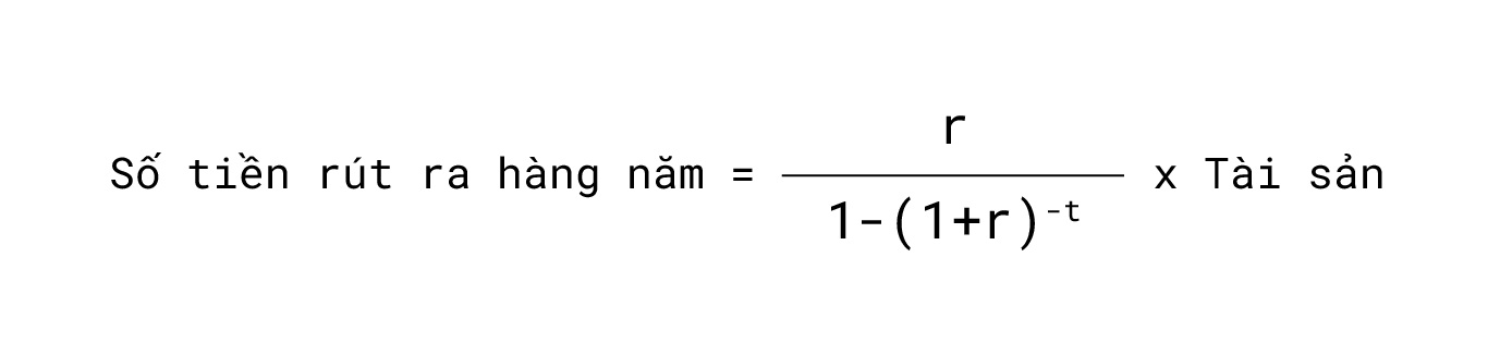 Trong đó r là tỷ suất sinh lợi phi rủi ro, như trái phiếu chính phủ có thời hạn 10 năm chẳng hạn; t là số năm dự kiến còn sống.