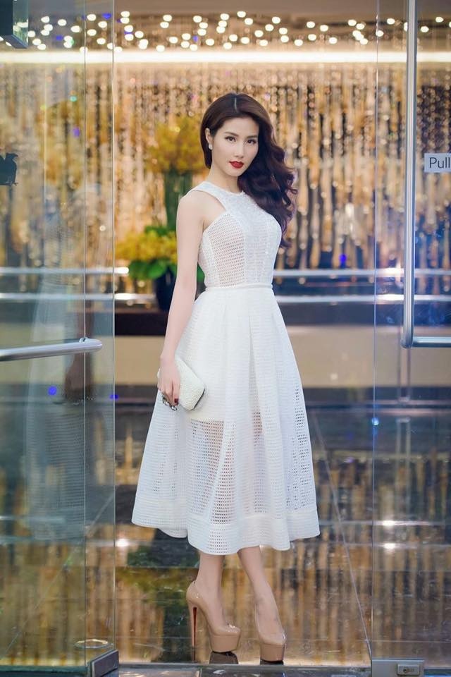 Không khó nhận ra cô nàng là fan của các kiểu đầm ôm sát và có chất liệu voan, ren mỏng đủ khoe da gợi cảm.