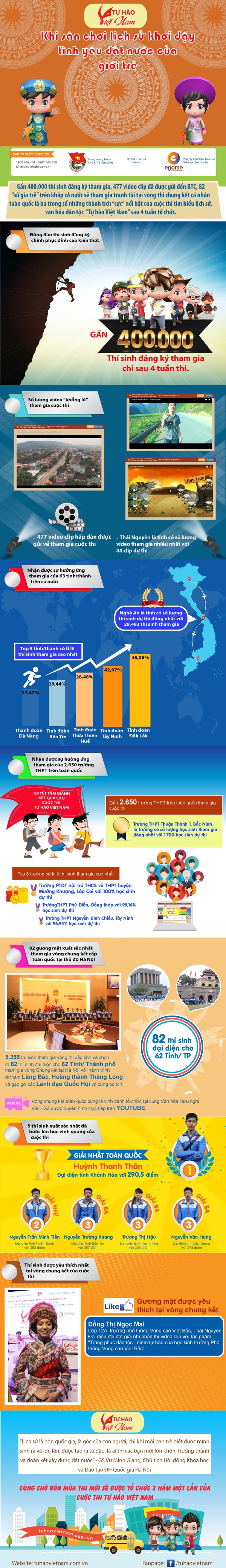 Cuộc thi "Tự hào Việt Nam" trải qua 4 tuần tổ chức đã nhận được 400.000 bài dự thi và hưởng ứng từ các bạn trẻ tại 63 tỉnh thành.