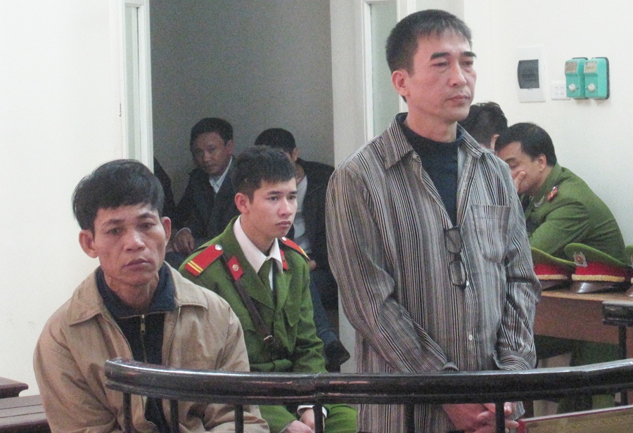 | Bị cáo Dũng (đứng) và Ngưu tại tòa. |