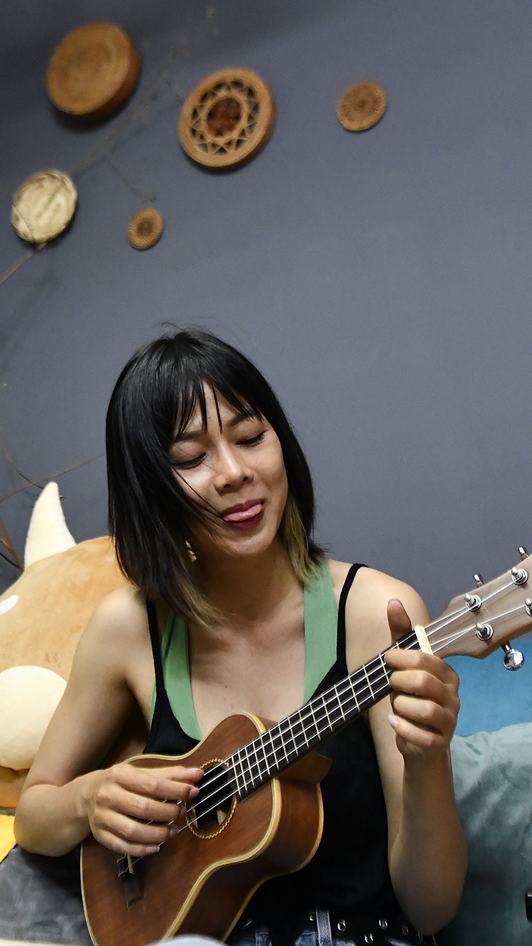 | Kết thúc một ngày, tôi thường tập chơi đàn ukulele một mình tại nhà. Tôi thích loại nhạc cụ này vì dễ chơi, giai điệu vui nhộn, giúp giảm stress hiệu quả. Tôi quan niệm làm nghệ thuật cần sự đa dạng, nên luôn cố gắng học thêm nhiều thứ, không ngừng làm mới bản thân. |