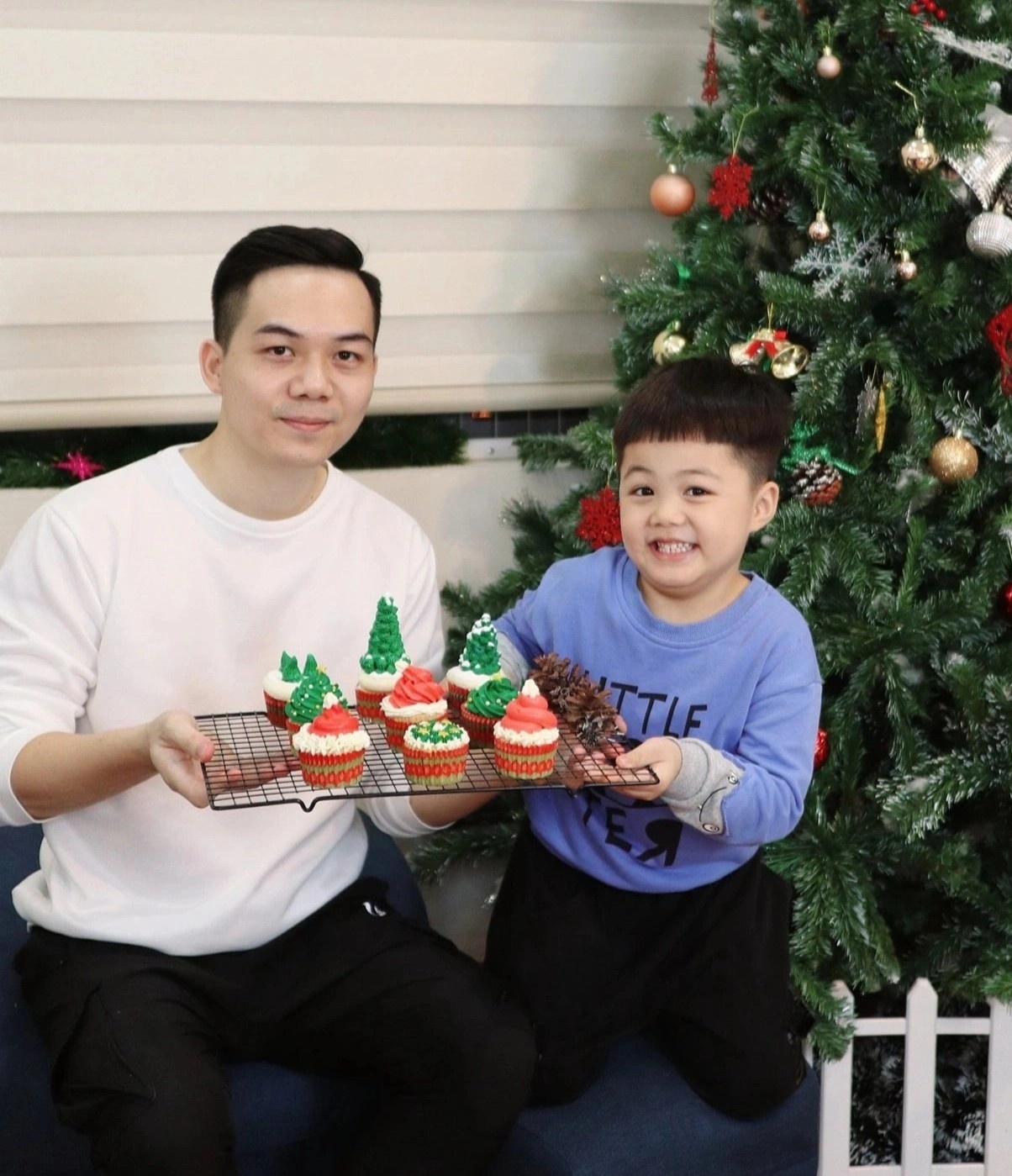 Giáng sinh năm nào cậu nhóc nhà tôi cũng luôn hỏi bố khi nào có tuyết. Năm nay, sắp xếp được thời gian, tôi vào bếp làm bánh cupcake với tuyết "handmade", vừa được ngắm vừa được ăn để thực hiện mong ước của con.