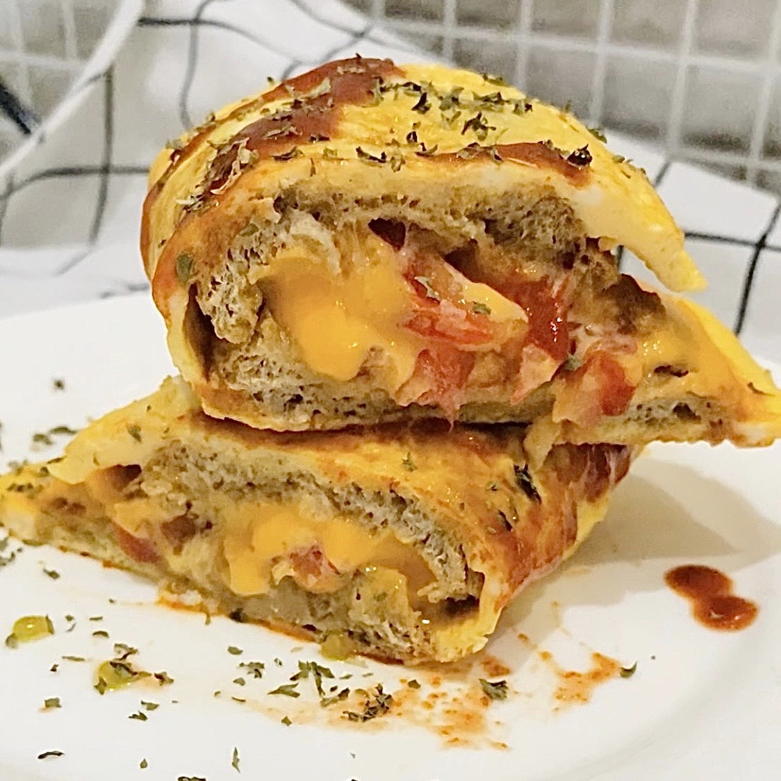 - Bước 4 : Khi trứng chín, gấp gọn hai bên mép và gập đôi bánh mì lại.